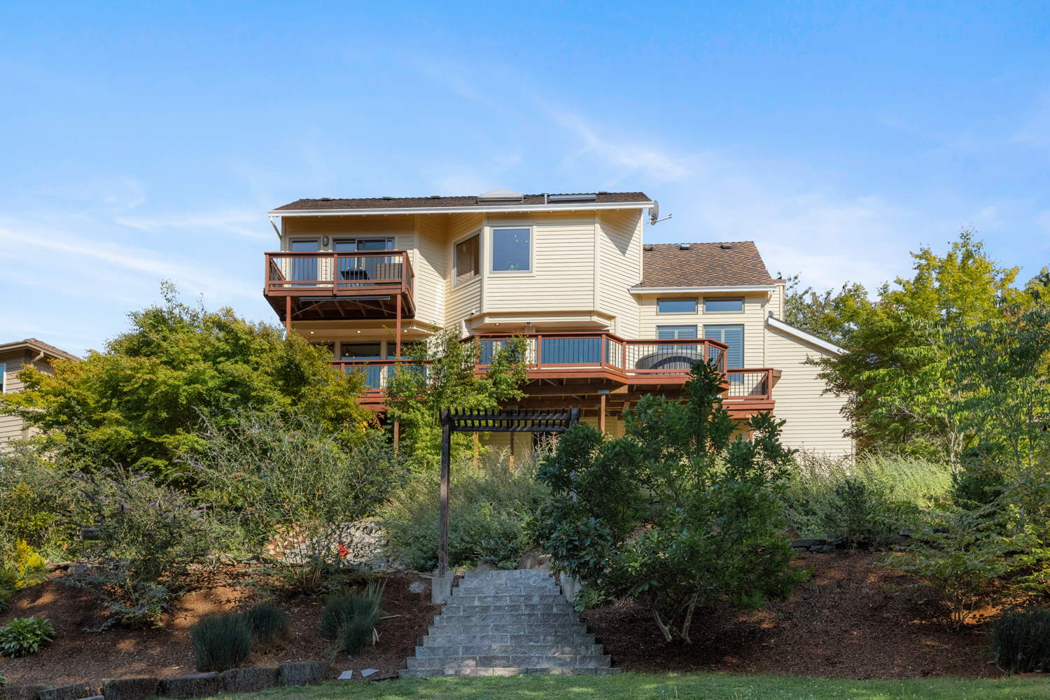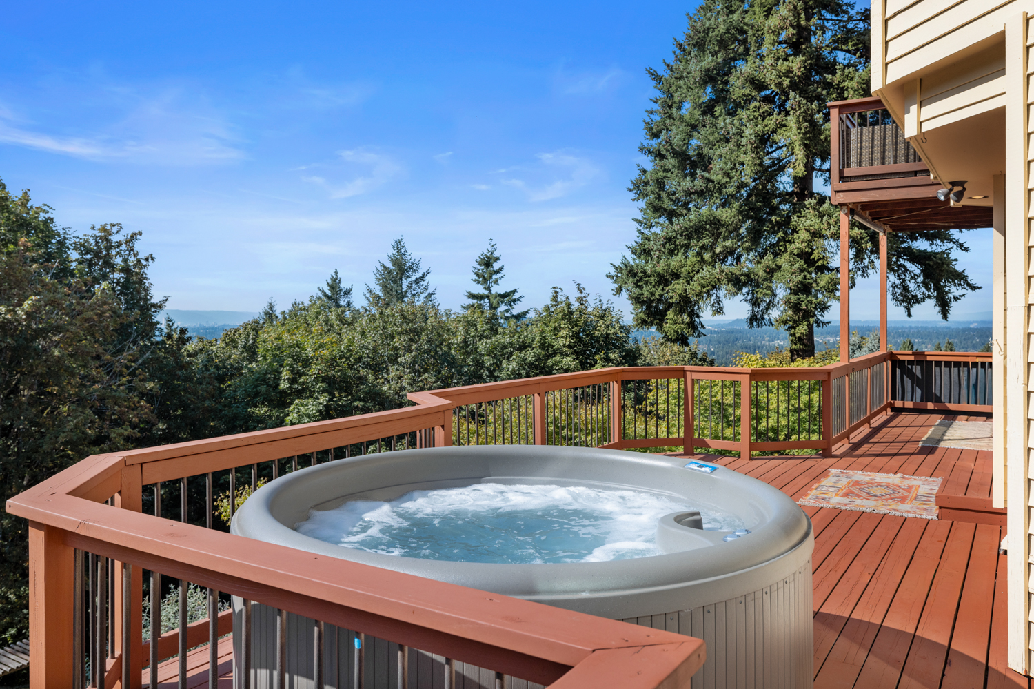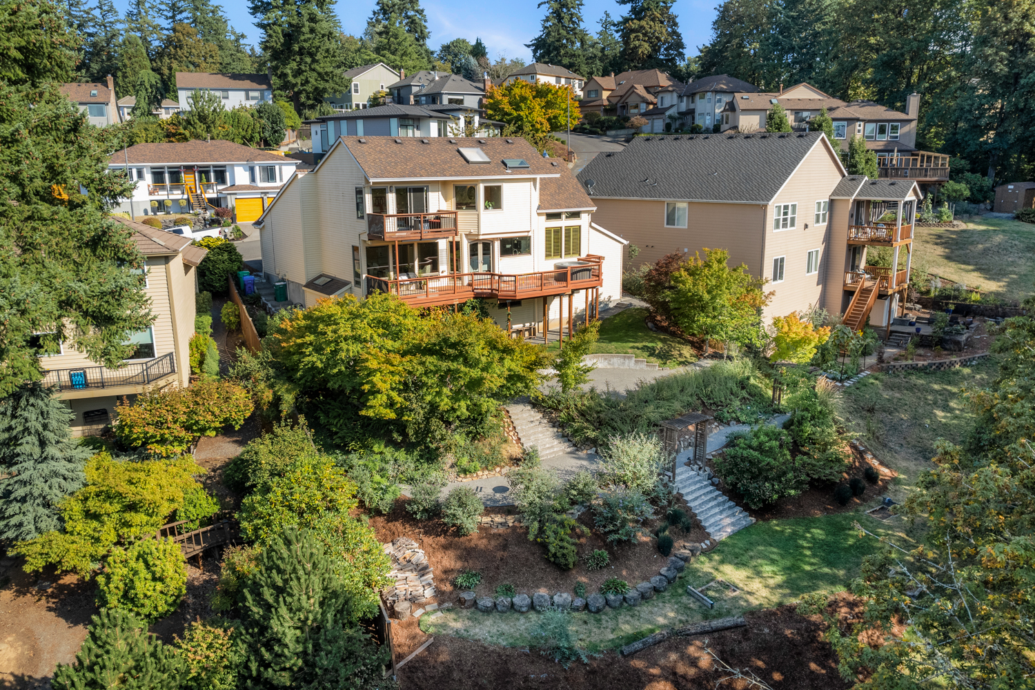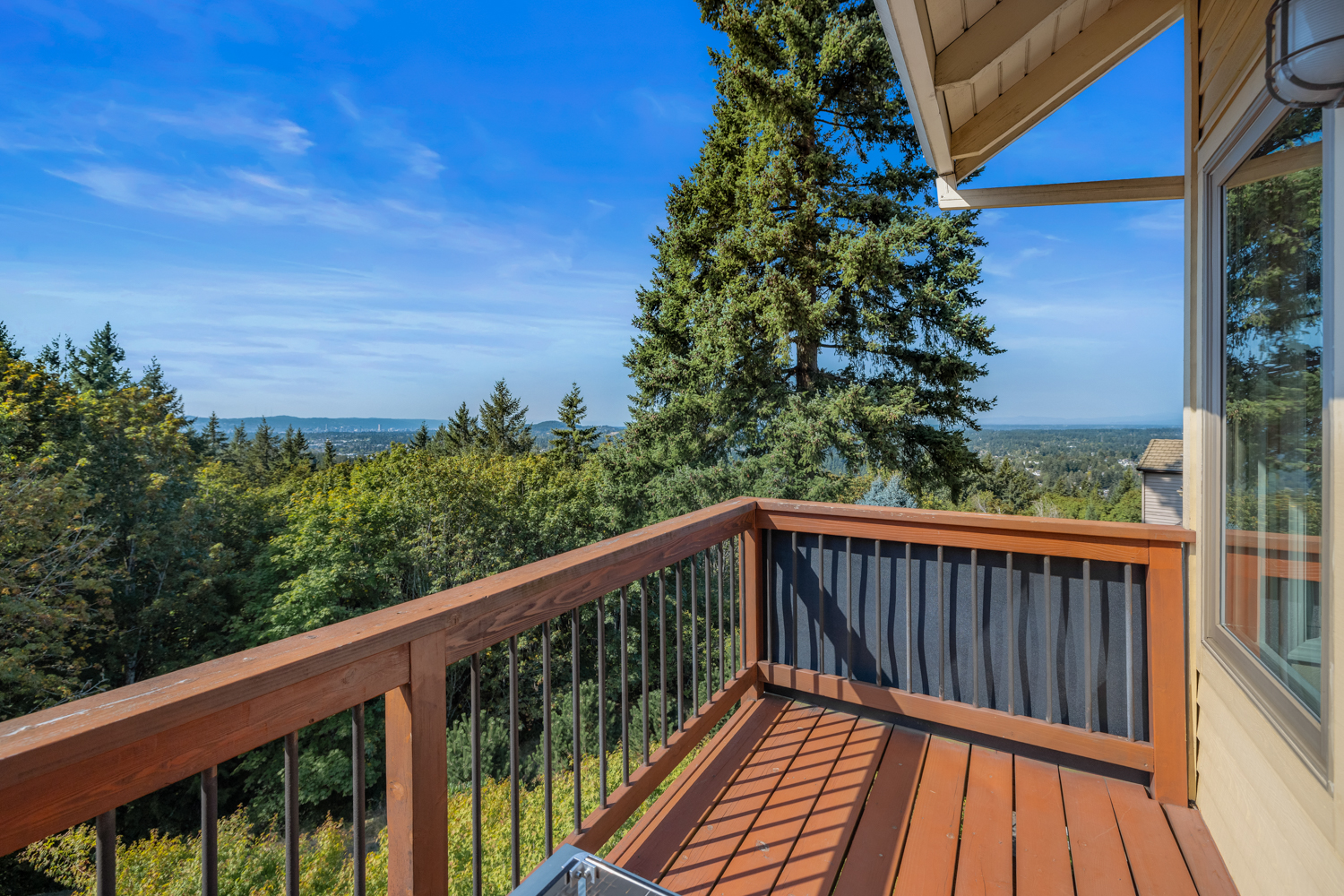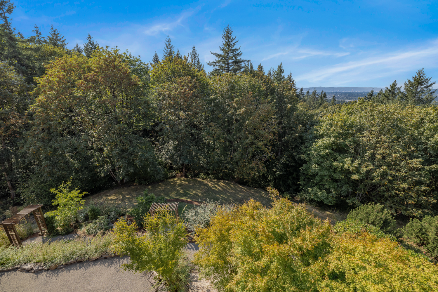 Architectural sanctuary with million dollar skyline views, privacy, and greenbelt backdrop. This 2,735+ sq ft hillside retreat features 3 decks, vaulted ceilings, a wall of glass, and flexible living spaces designed for privacy and connection. Spa-style primary suite located upstairs with cathedral ceiling and tub framing forest + city views. Three distinct living rooms, garden terraces, hot tub deck with nighttime skyline views. Bonus hobby studio with skylights, plumbing stub, and private access. Triple-pane windows, new A/C (2024), and a secret, climate-stable storage room built into the hillside. Quiet, secure location rated among one of Portland’s safest neighborhoods. Minutes from Portland’s creative pulse, but worlds away in peace and privacy.