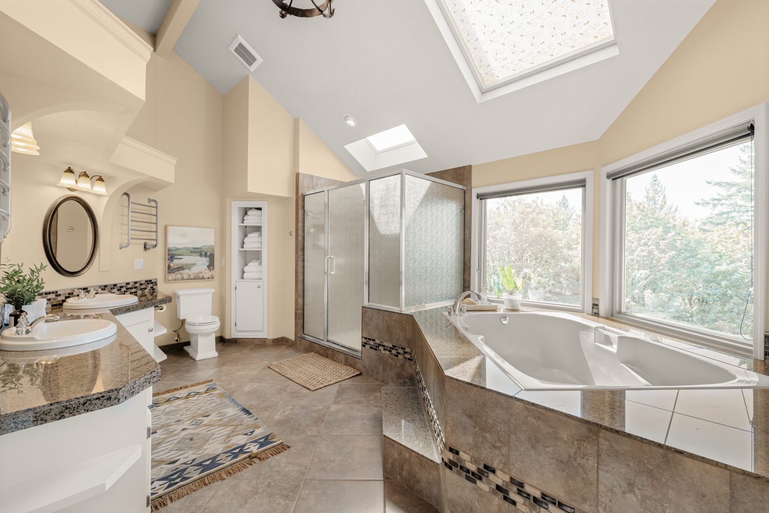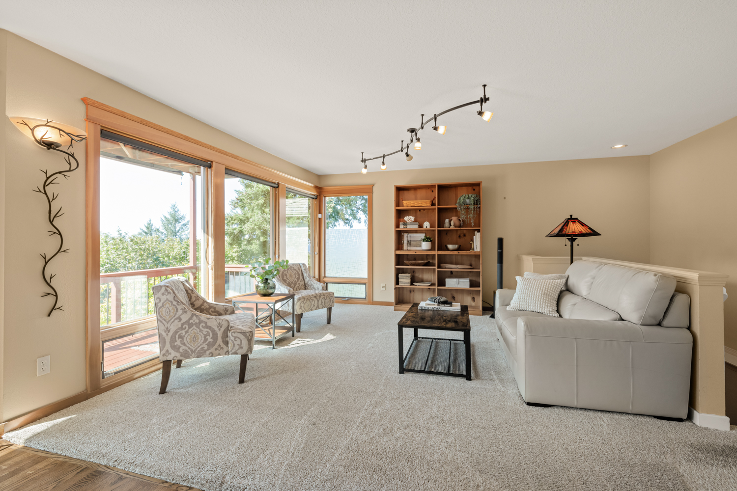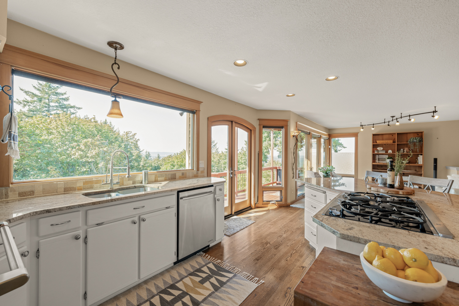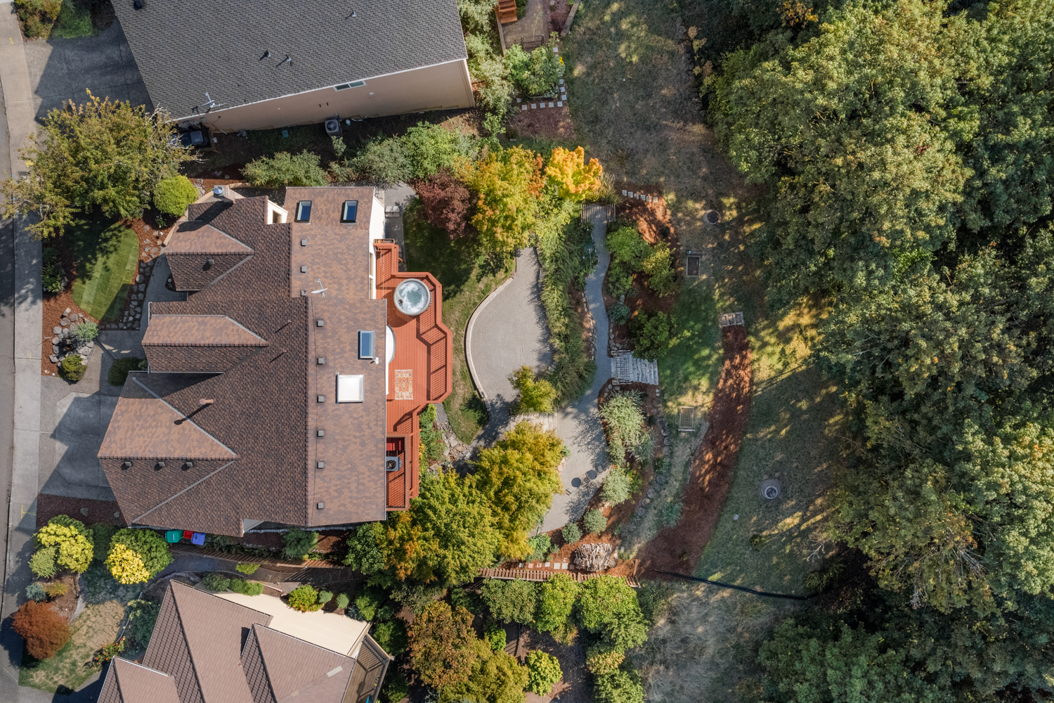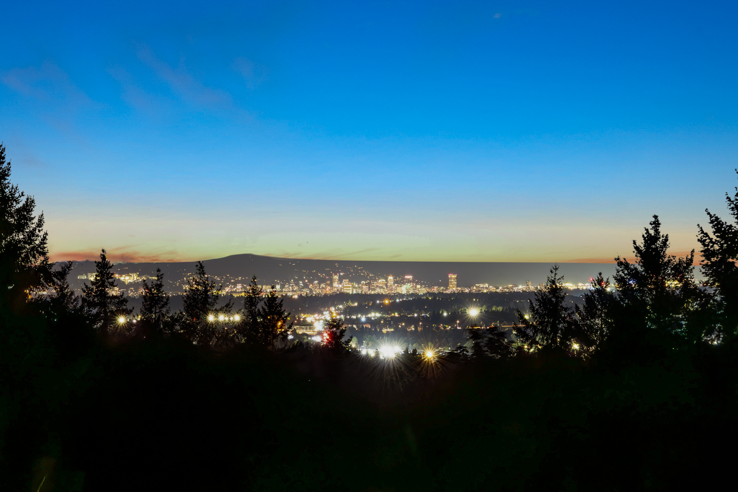 Architectural sanctuary with million dollar skyline views, privacy, and greenbelt backdrop. This 2,735+ sq ft hillside retreat features 3 decks, vaulted ceilings, a wall of glass, and flexible living spaces designed for privacy and connection. Spa-style primary suite located upstairs with cathedral ceiling and tub framing forest + city views. Three distinct living rooms, garden terraces, hot tub deck with nighttime skyline views. Bonus hobby studio with skylights, plumbing stub, and private access. Triple-pane windows, new A/C (2024), and a secret, climate-stable storage room built into the hillside. Quiet, secure location rated among one of Portland’s safest neighborhoods. Minutes from Portland’s creative pulse, but worlds away in peace and privacy.
