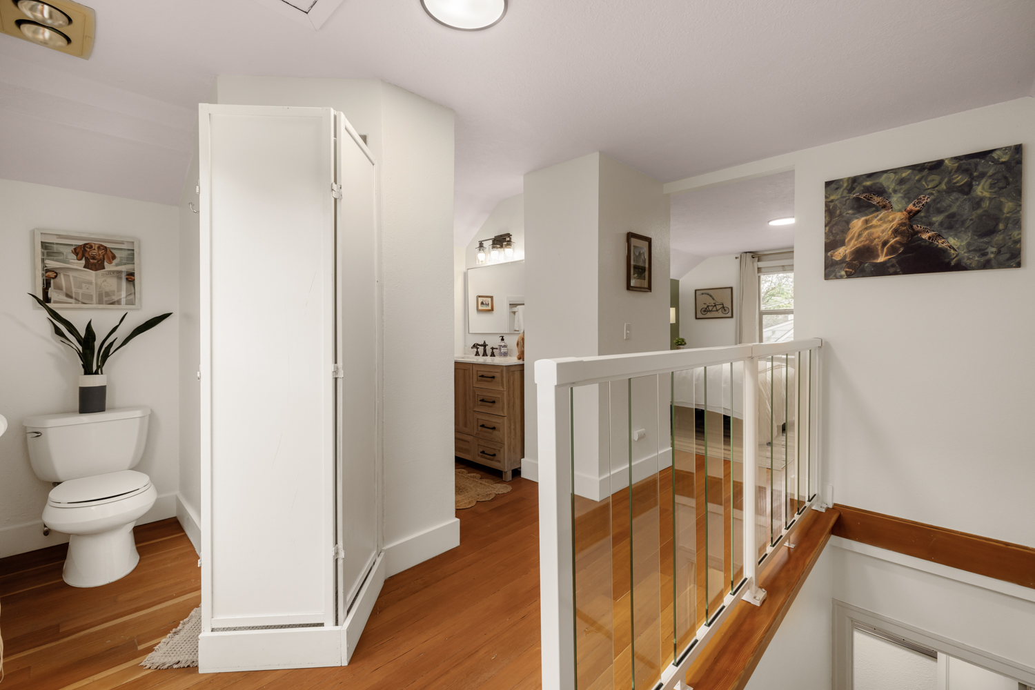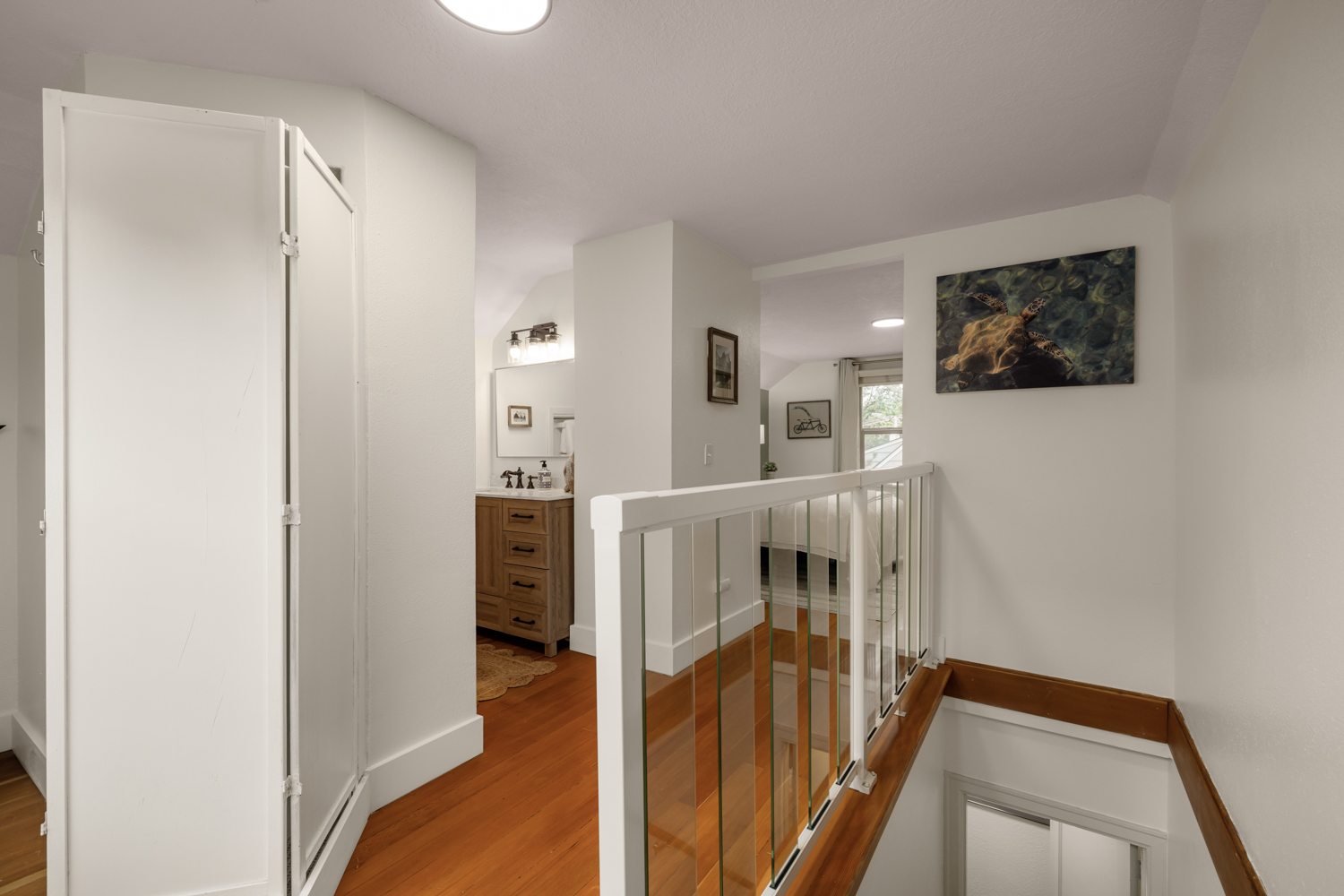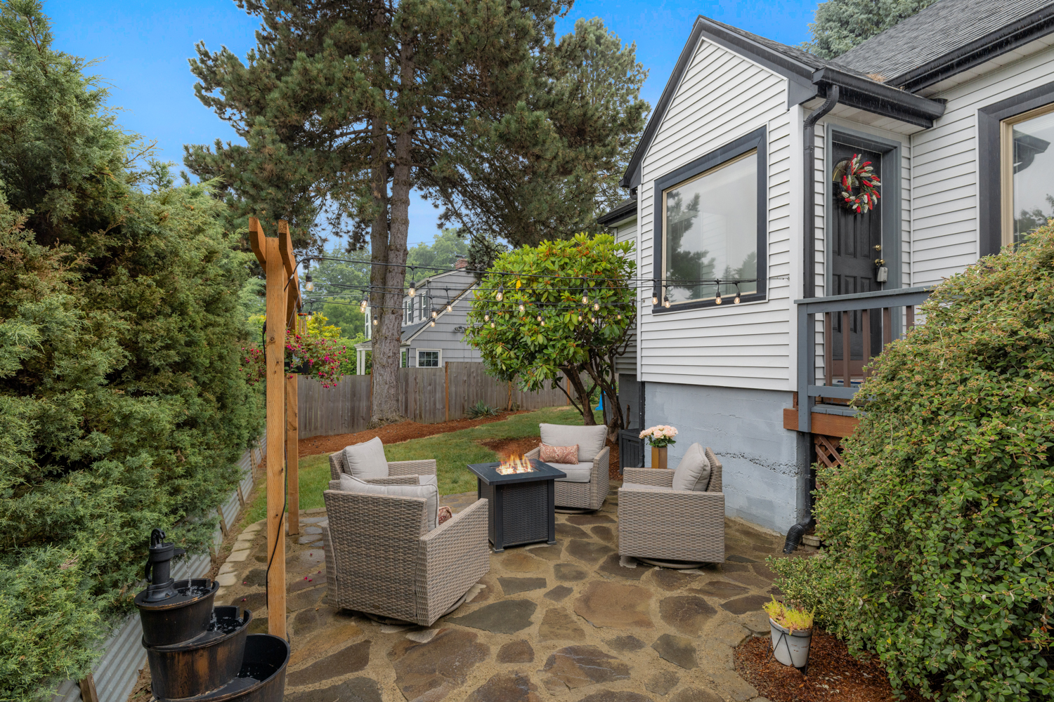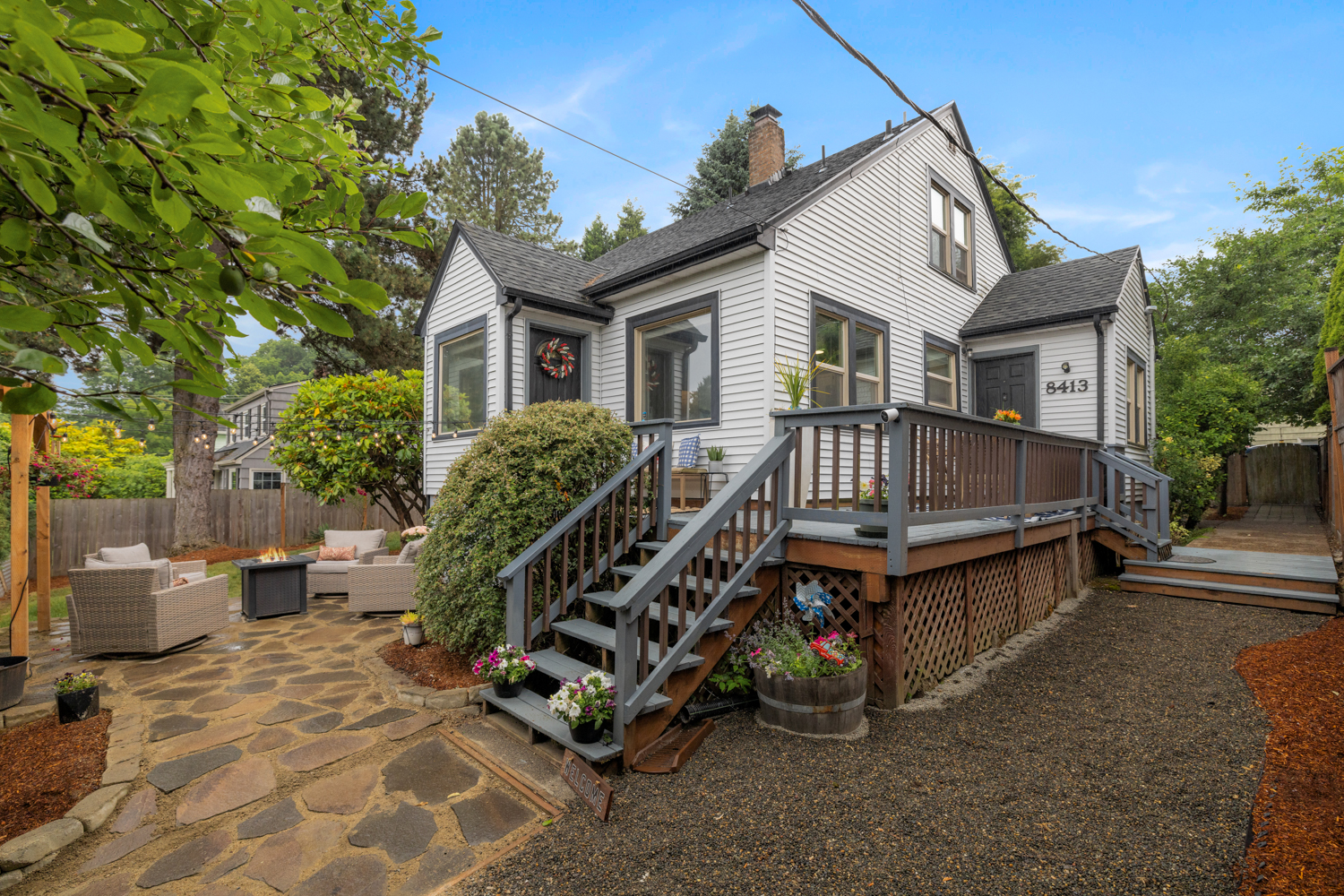This charming English-style cottage sits above the quiet treelined street and blends timeless character with thoughtful modern updates. The main level offers two bedrooms and a beautifully updated bath, with hardwood floors and a remodeled kitchen that blends function and style. Off the kitchen, you’ll find a flexible space perfect for an office, mudroom, or creative nook. Upstairs is a spacious primary suite. The large basement boasts high ceilings and loads of potential—whether you’re dreaming of a home gym, play room, or additional living space. Recent upgrades include a furnace, water heater, plumbing, electrical panel, windows, and so much more. Outside, the landscaped yard and new patio are ready for summer hangs, morning coffee, or peaceful evenings. A rare blend of charm, privacy, and possibility. This home is a true sanctuary in the city, come see before it’s gone!