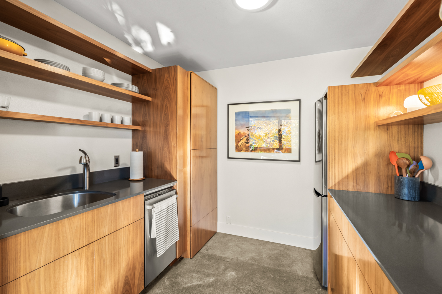 Experience the cozy, urban charm of this inviting Goose Hollow condo! Thoughtfully updated throughout, this warm and stylish home features modern concrete floors, Caesarstone countertops, rich walnut cabinetry, and stainless-steel appliances. As a top-floor unit, it offers an open and airy feel with lovely views of the West Hills. You’ll appreciate the in-unit washer/dryer, spacious walk-in closet, custom built-ins, and the convenience of deeded garage parking and storage. Nestled close to the MAX rail, bus lines, downtown, NW, OHSU, the MAC Club, Providence Park, and Washington Park, this condo is perfect for enjoying the best of Portland city living!