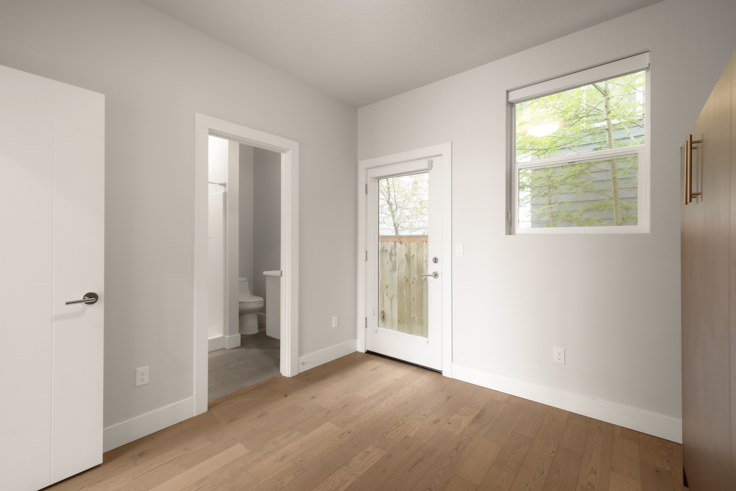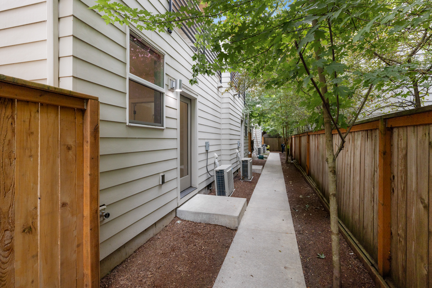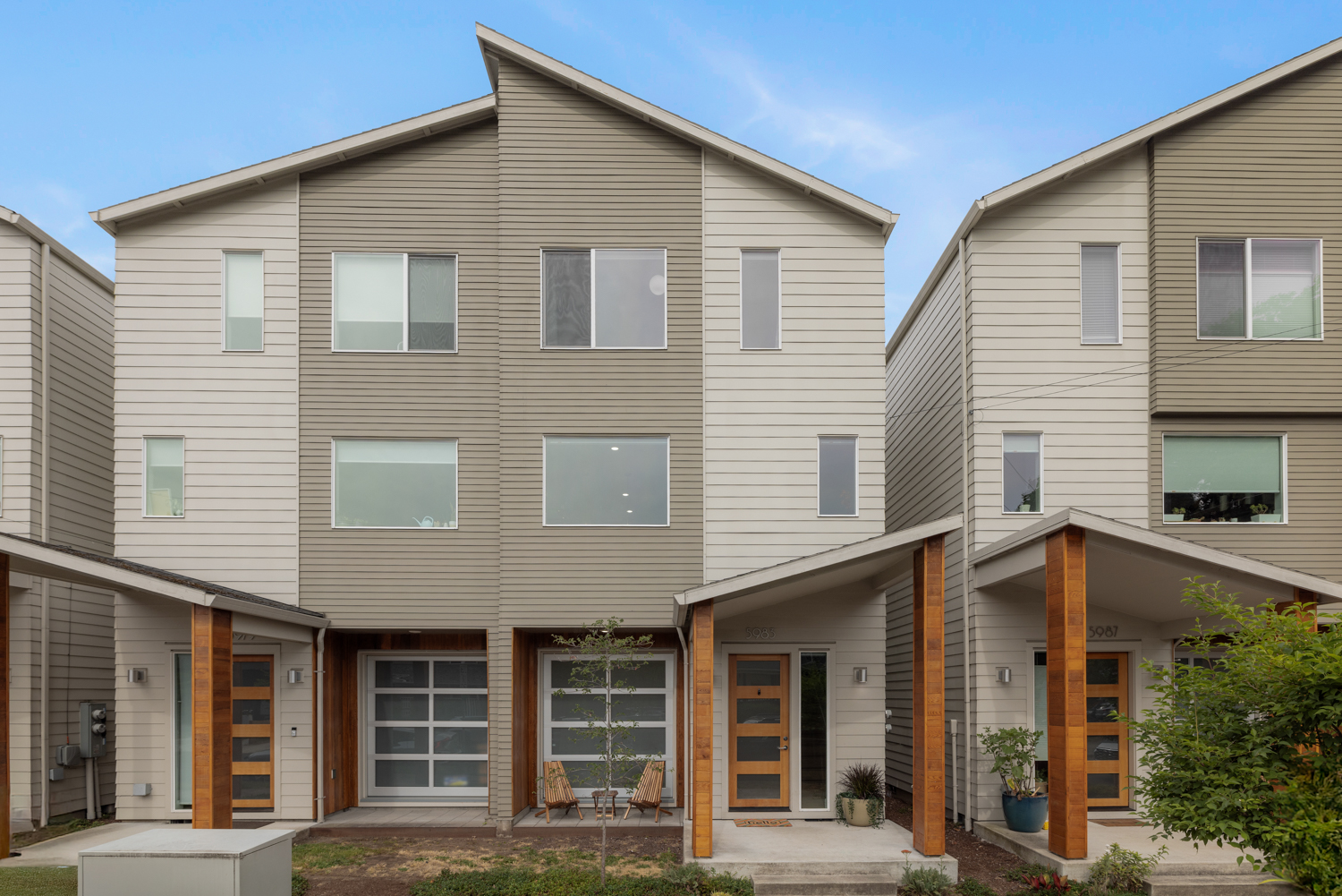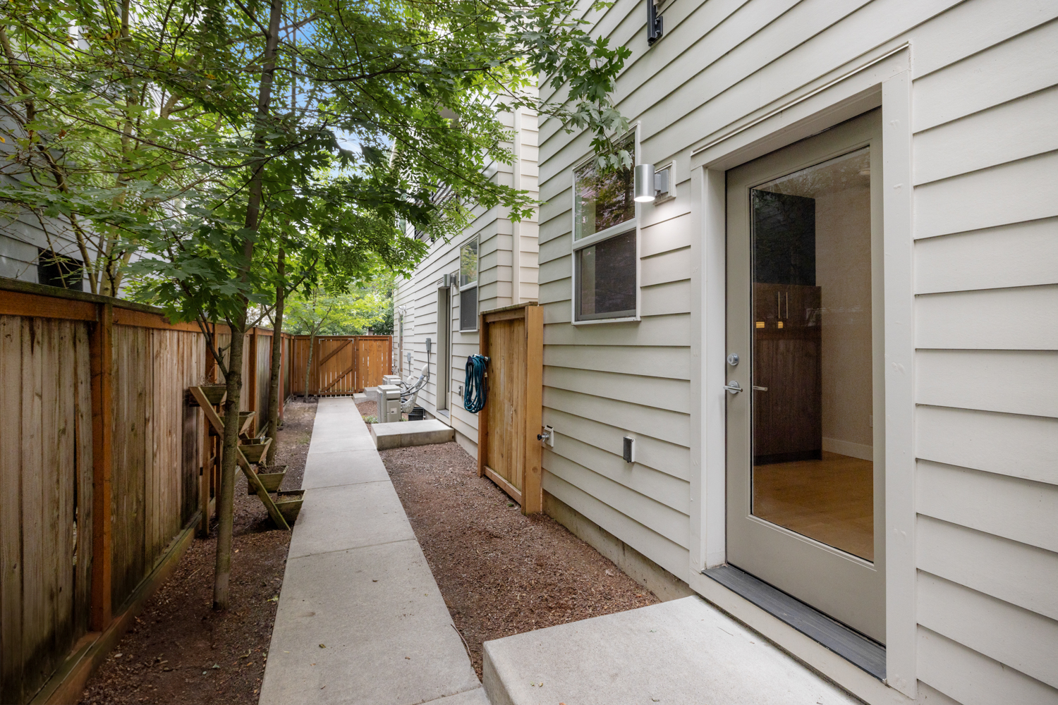 Modern townhouse-style condo in Portland’s Humboldt neighborhood, located at the intersection of the N Ainsworth and N Michigan Greenways—ideal for commuters, creatives, and outdoor enthusiasts alike. This home features 3 en-suite bedrooms and flexible living across three smartly designed levels. The ground floor offers hardwood flooring, a versatile flex space with a roll-up garage door, and a private bedroom with its own entrance—perfect for a guest suite or home office. Upstairs, the open-concept main level is made for entertaining, with an oversized slider that fills the space with natural light, a spacious balcony with a peekaboo view of Forest Park, and a sleek, modern kitchen outfitted with quartz countertops, a pantry, gas range, stainless steel appliances, and an east-facing picture window. The top floor features two vaulted en-suite bedrooms, a convenient laundry closet, and brand-new carpet throughout. Just minutes from Peninsula Park Rose Garden, the MAX line, and the shops and restaurants of Mississippi Street. Taking the N Michigan Greenway offers a direct route to the vibrant Mississippi District too!