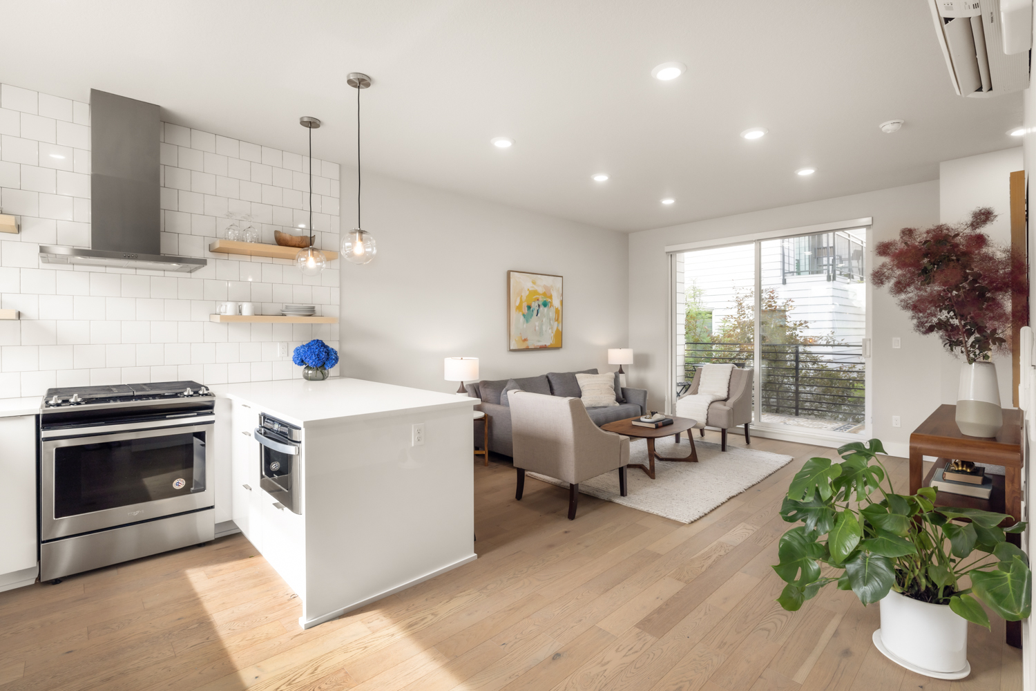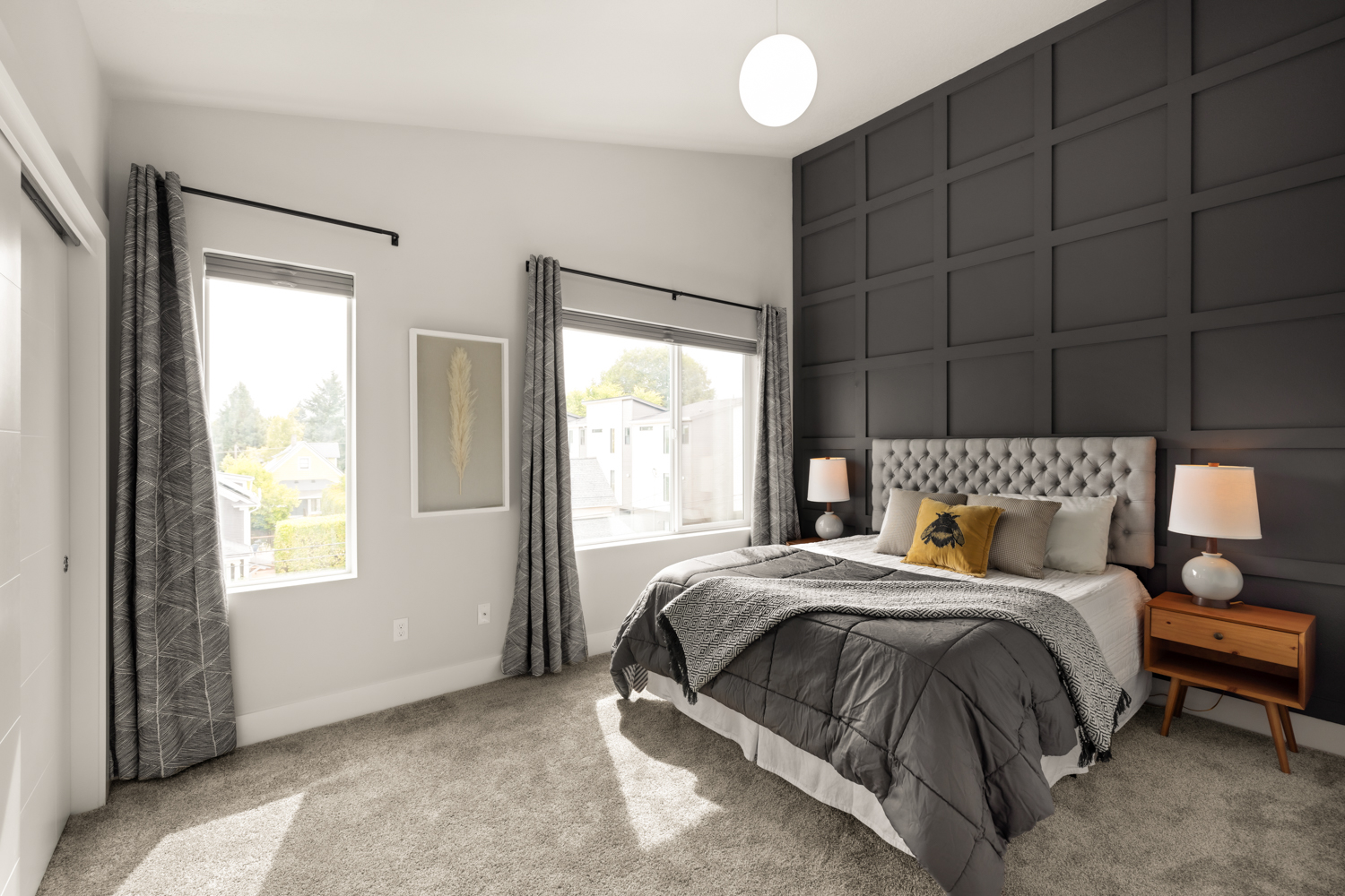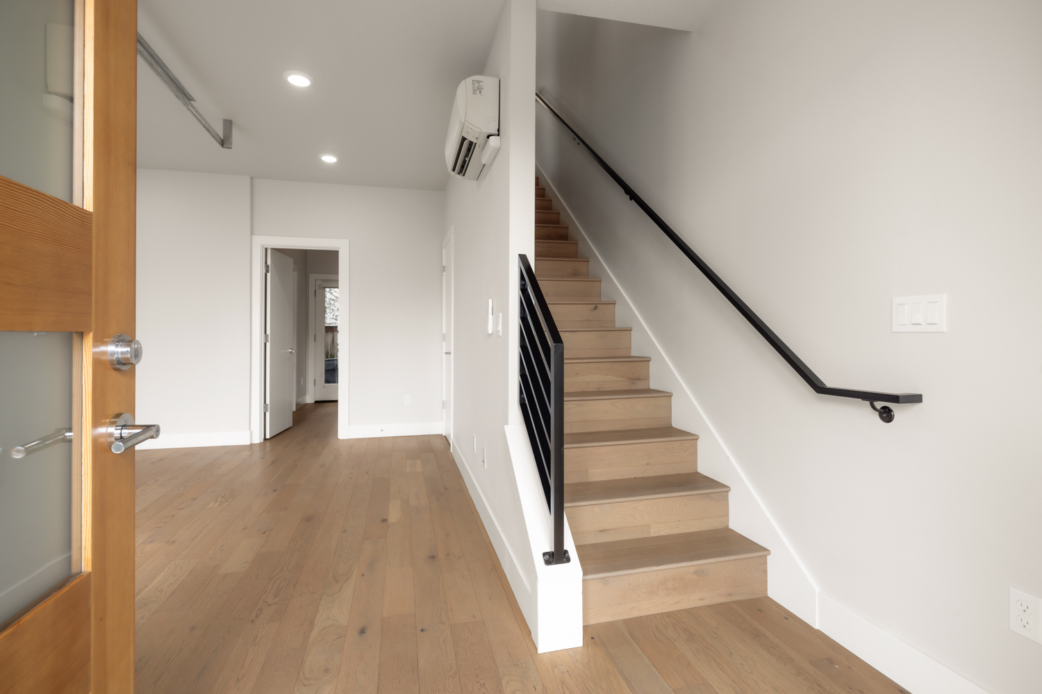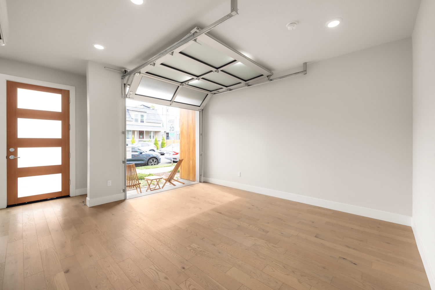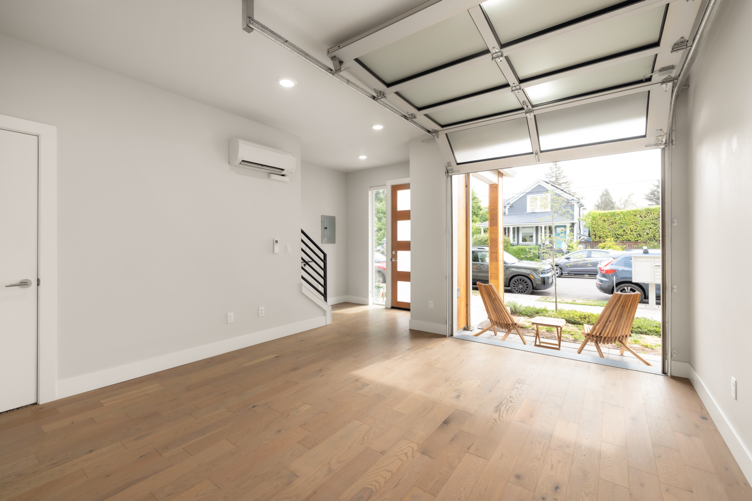 Modern townhouse-style condo in Portland’s Humboldt neighborhood, located at the intersection of the N Ainsworth and N Michigan Greenways—ideal for commuters, creatives, and outdoor enthusiasts alike. This home features 3 en-suite bedrooms and flexible living across three smartly designed levels. The ground floor offers hardwood flooring, a versatile flex space with a roll-up garage door, and a private bedroom with its own entrance—perfect for a guest suite or home office. Upstairs, the open-concept main level is made for entertaining, with an oversized slider that fills the space with natural light, a spacious balcony with a peekaboo view of Forest Park, and a sleek, modern kitchen outfitted with quartz countertops, a pantry, gas range, stainless steel appliances, and an east-facing picture window. The top floor features two vaulted en-suite bedrooms, a convenient laundry closet, and brand-new carpet throughout. Just minutes from Peninsula Park Rose Garden, the MAX line, and the shops and restaurants of Mississippi Street. Taking the N Michigan Greenway offers a direct route to the vibrant Mississippi District too!