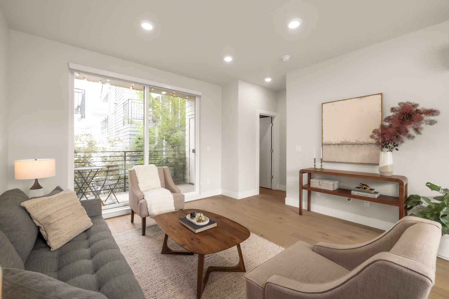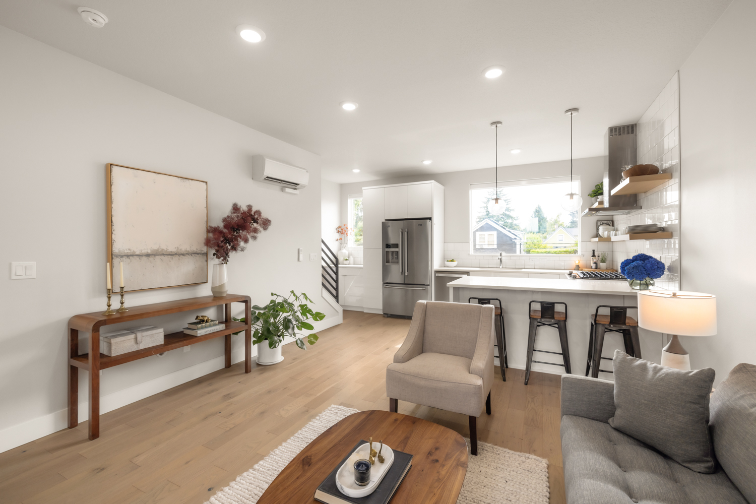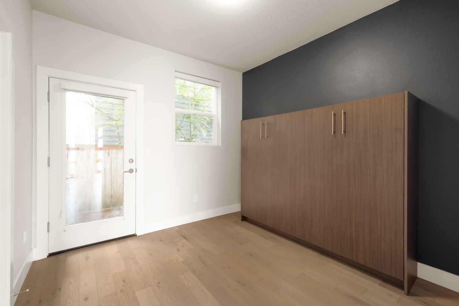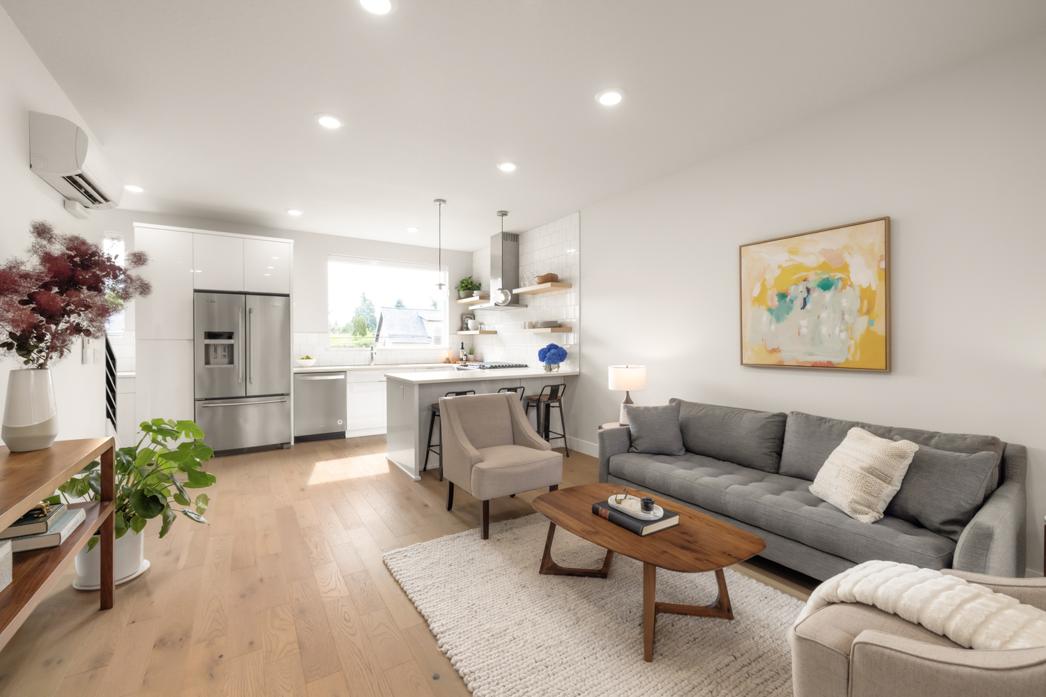 Modern townhouse-style condo in Portland’s Humboldt neighborhood, located at the intersection of the N Ainsworth and N Michigan Greenways—ideal for commuters, creatives, and outdoor enthusiasts alike. This home features 3 en-suite bedrooms and flexible living across three smartly designed levels. The ground floor offers hardwood flooring, a versatile flex space with a roll-up garage door, and a private bedroom with its own entrance—perfect for a guest suite or home office. Upstairs, the open-concept main level is made for entertaining, with an oversized slider that fills the space with natural light, a spacious balcony with a peekaboo view of Forest Park, and a sleek, modern kitchen outfitted with quartz countertops, a pantry, gas range, stainless steel appliances, and an east-facing picture window. The top floor features two vaulted en-suite bedrooms, a convenient laundry closet, and brand-new carpet throughout. Just minutes from Peninsula Park Rose Garden, the MAX line, and the shops and restaurants of Mississippi Street. Taking the N Michigan Greenway offers a direct route to the vibrant Mississippi District too!