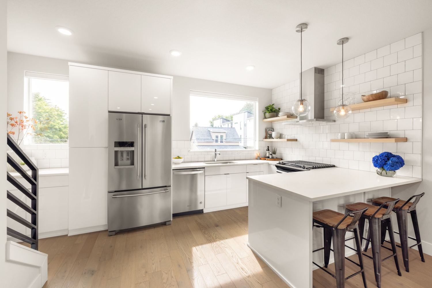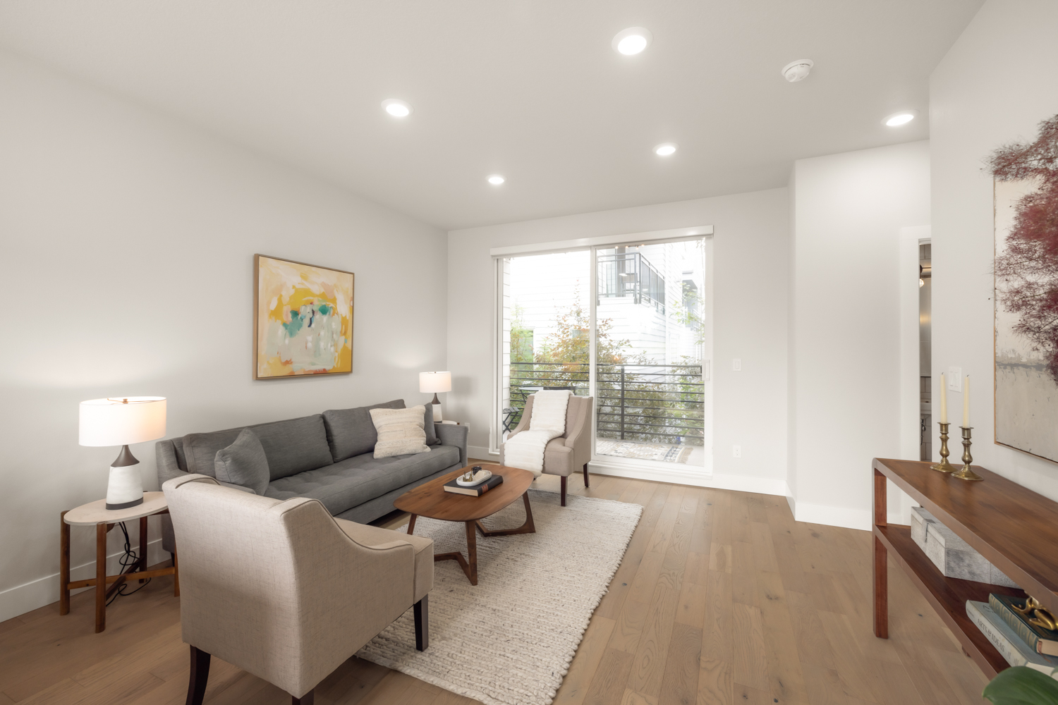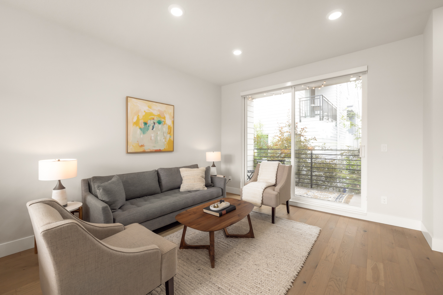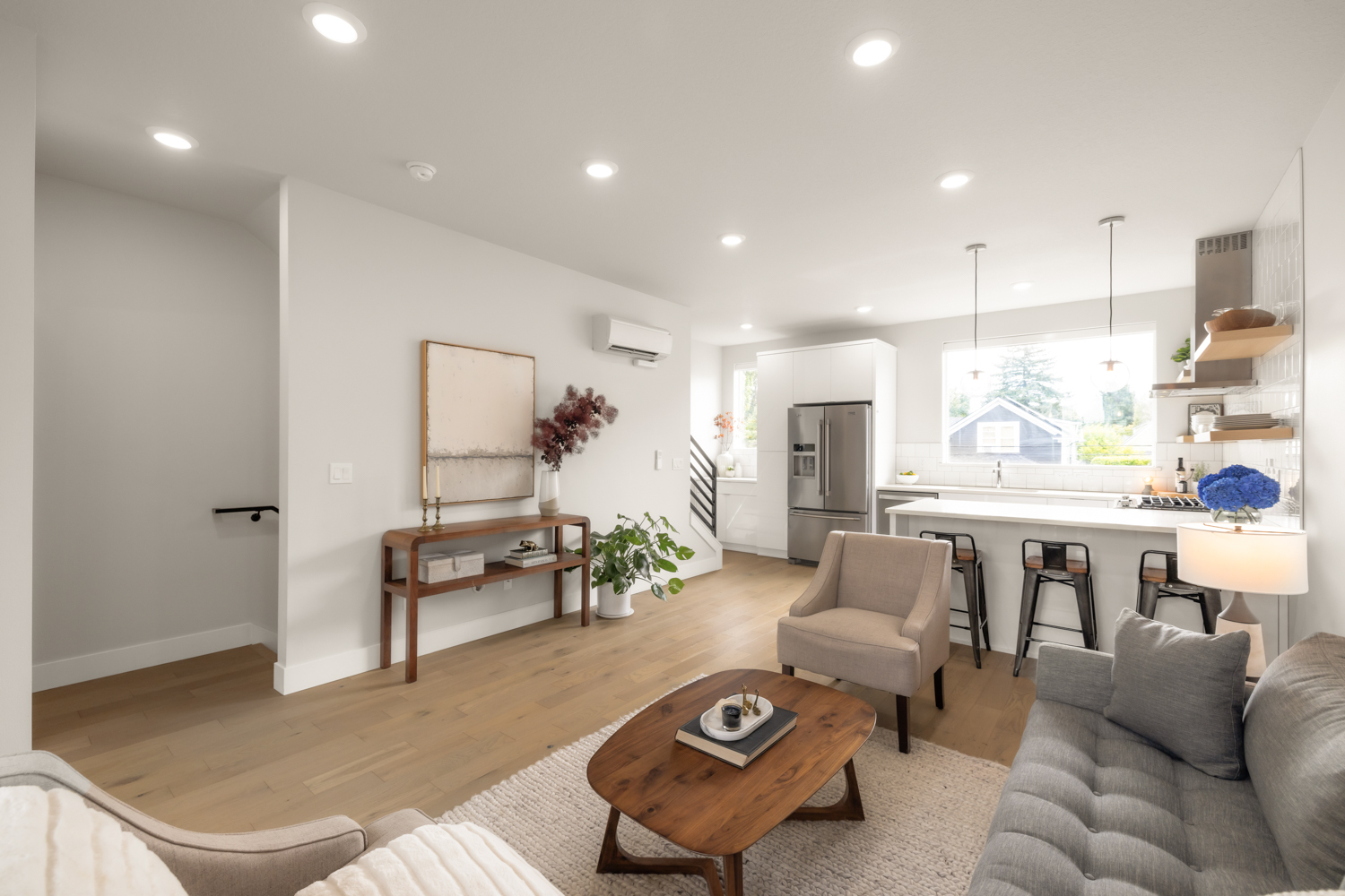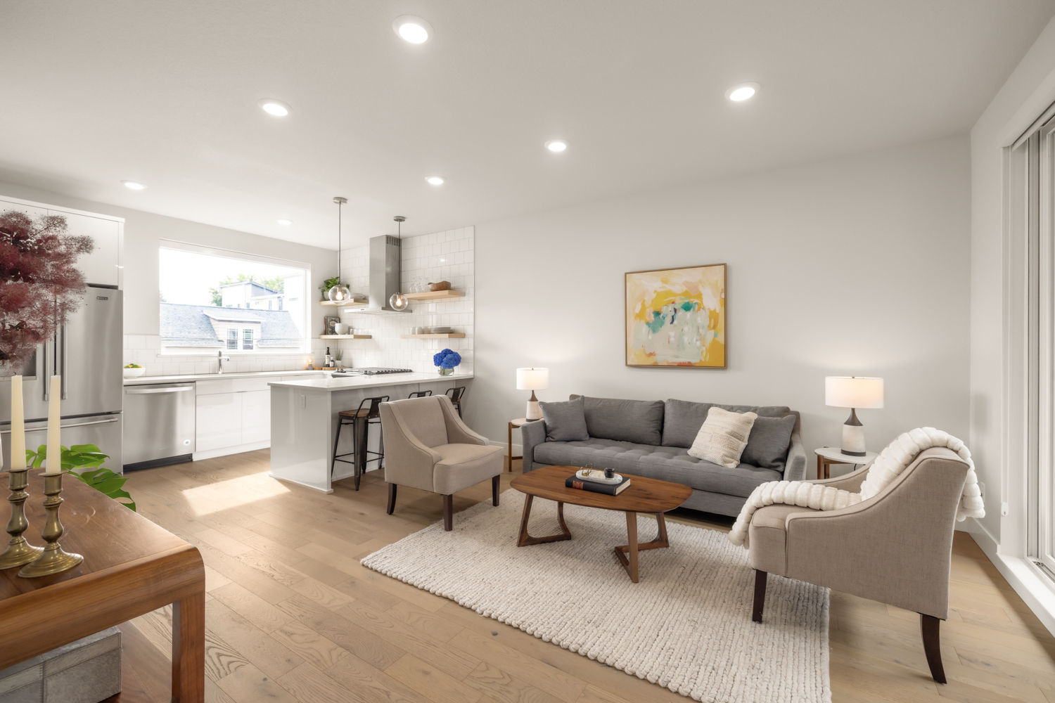 Modern townhouse-style condo in Portland’s Humboldt neighborhood, located at the intersection of the N Ainsworth and N Michigan Greenways—ideal for commuters, creatives, and outdoor enthusiasts alike. This home features 3 en-suite bedrooms and flexible living across three smartly designed levels. The ground floor offers hardwood flooring, a versatile flex space with a roll-up garage door, and a private bedroom with its own entrance—perfect for a guest suite or home office. Upstairs, the open-concept main level is made for entertaining, with an oversized slider that fills the space with natural light, a spacious balcony with a peekaboo view of Forest Park, and a sleek, modern kitchen outfitted with quartz countertops, a pantry, gas range, stainless steel appliances, and an east-facing picture window. The top floor features two vaulted en-suite bedrooms, a convenient laundry closet, and brand-new carpet throughout. Just minutes from Peninsula Park Rose Garden, the MAX line, and the shops and restaurants of Mississippi Street. Taking the N Michigan Greenway offers a direct route to the vibrant Mississippi District too!