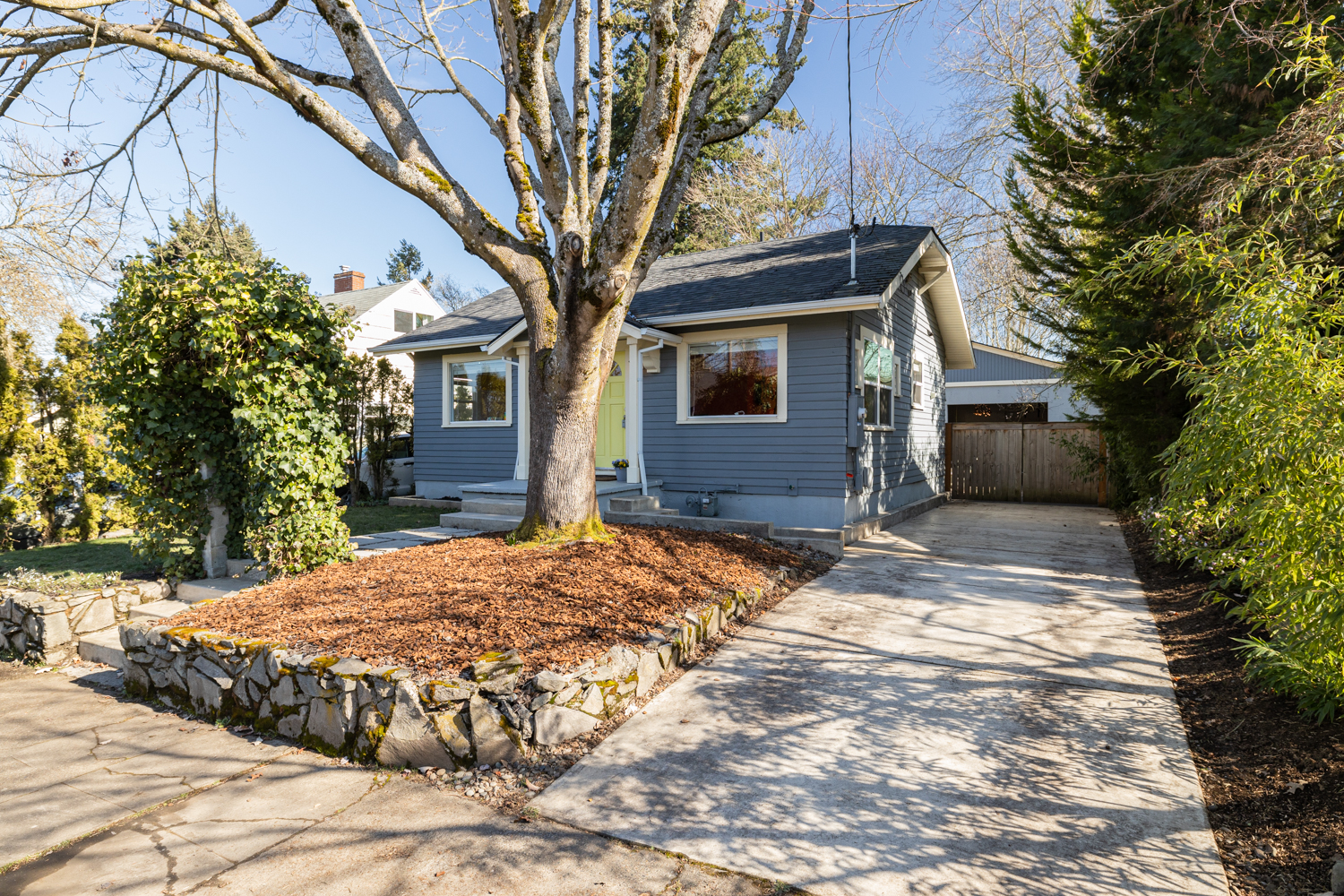Ideal, turnkey Roseway Bungalow. So much to love: tall ceilings & well-placed windows make it airy & bright, open floorplan w/modern kitchen (custom fir cabinets, concrete counters), beautifully updated bathroom, hardwoods. 600 sqft of unfinished basement/laundry/storage, plus an AMAZING 672 sqft detached garage/shop/studio w/endless potential- must see this space! Wonderful entertainer’s yard w/patio, garden beds. Updated systems-2016: elect, plumb, hvac, insul, seismic reinforcement, windows.