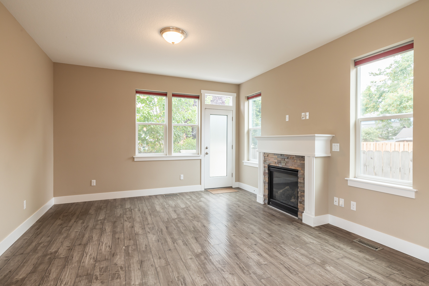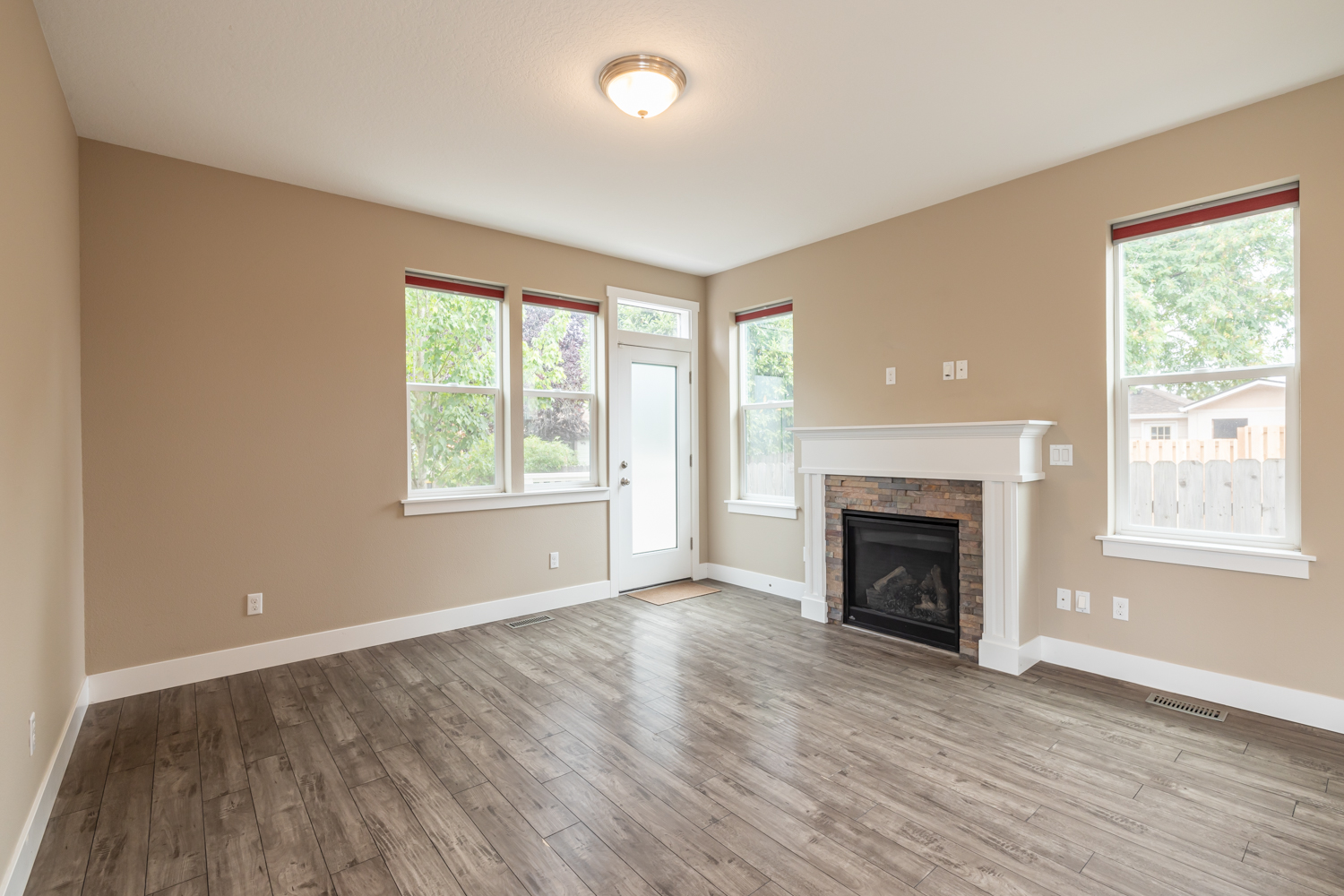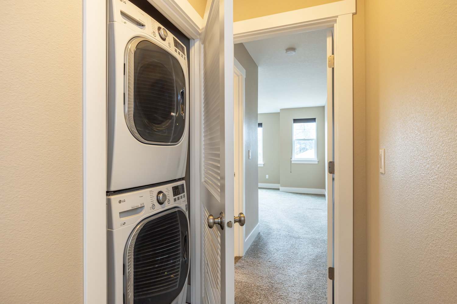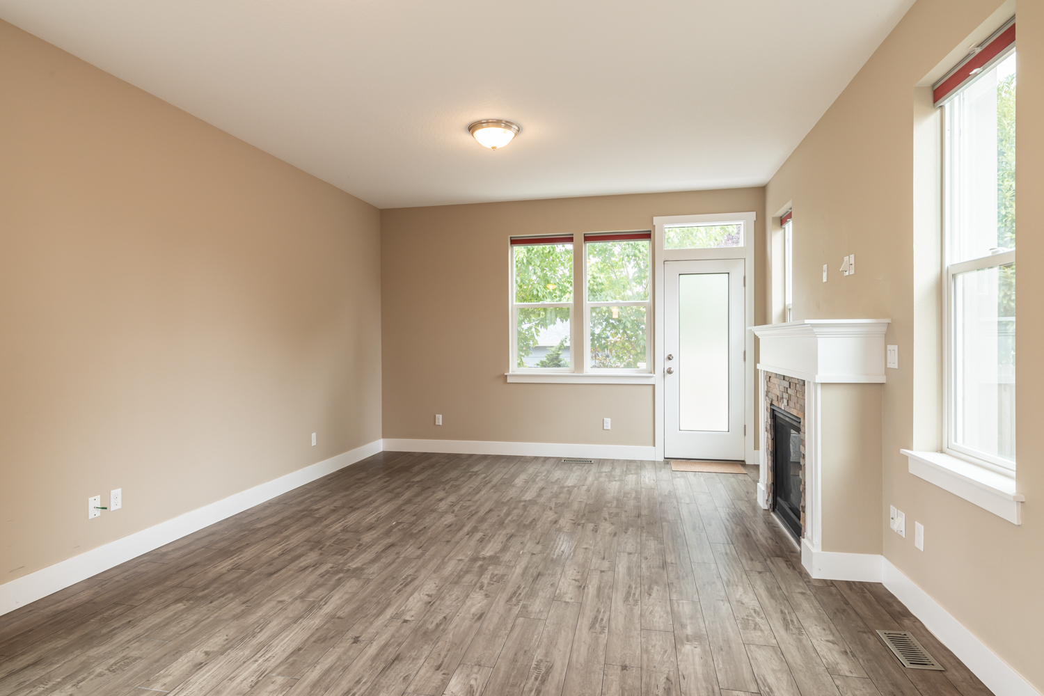 This charming Darlington/Brentwood home showcases solid tile countertops, a spacious peninsula island, and a full backsplash in the kitchen, all accentuated by high-end finishes. Unwind by the cozy gas fireplace, while the low-maintenance yard guarantees effortless upkeep. Stay comfortable throughout the seasons with air conditioning and a dedicated mini-split system in the primary bedroom. Convenience meets style with stackable washer and dryer units. Outside, craftsman vibes and a covered front porch provide a warm welcome, while stainless steel appliances and abundant natural light from large windows define modern living.