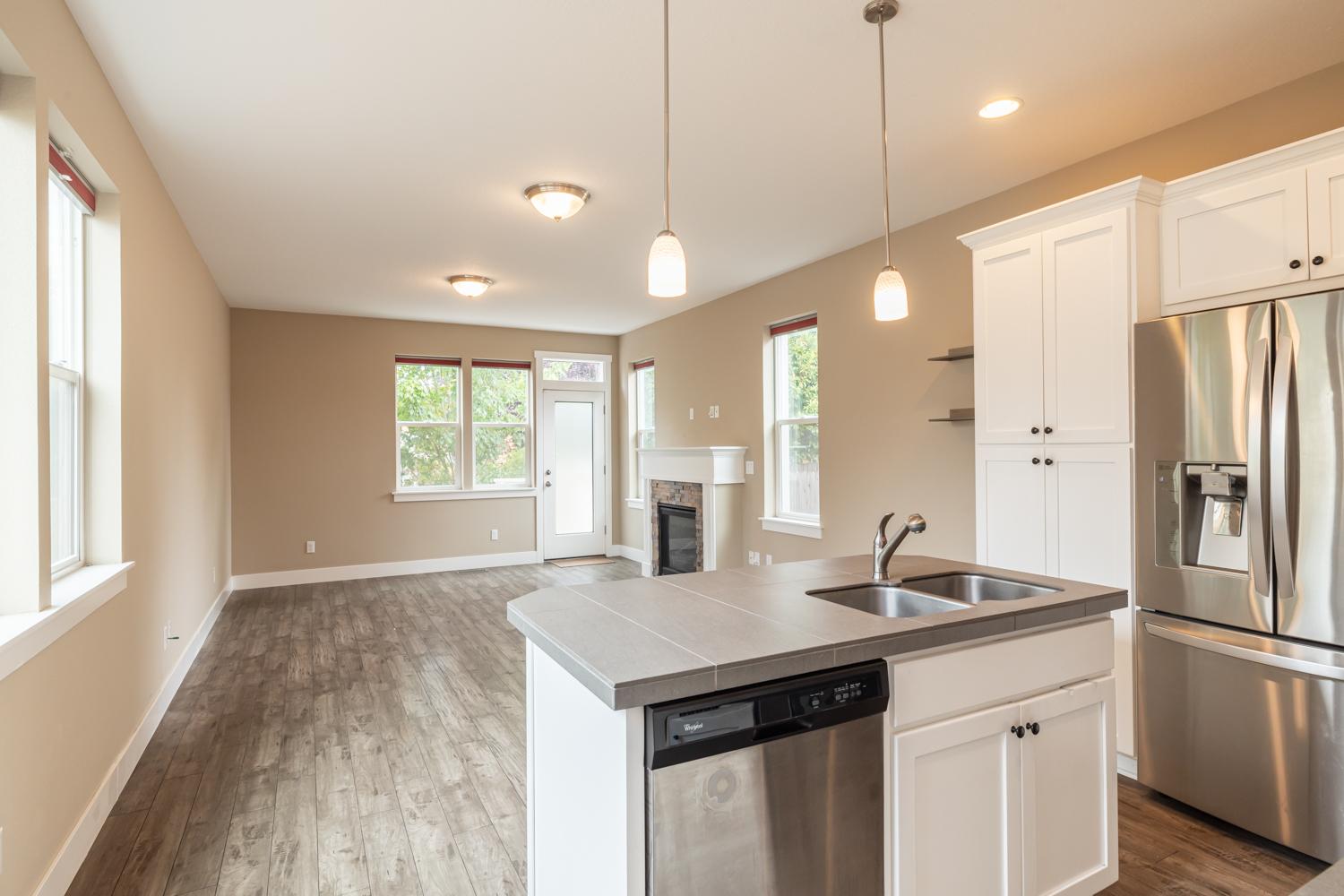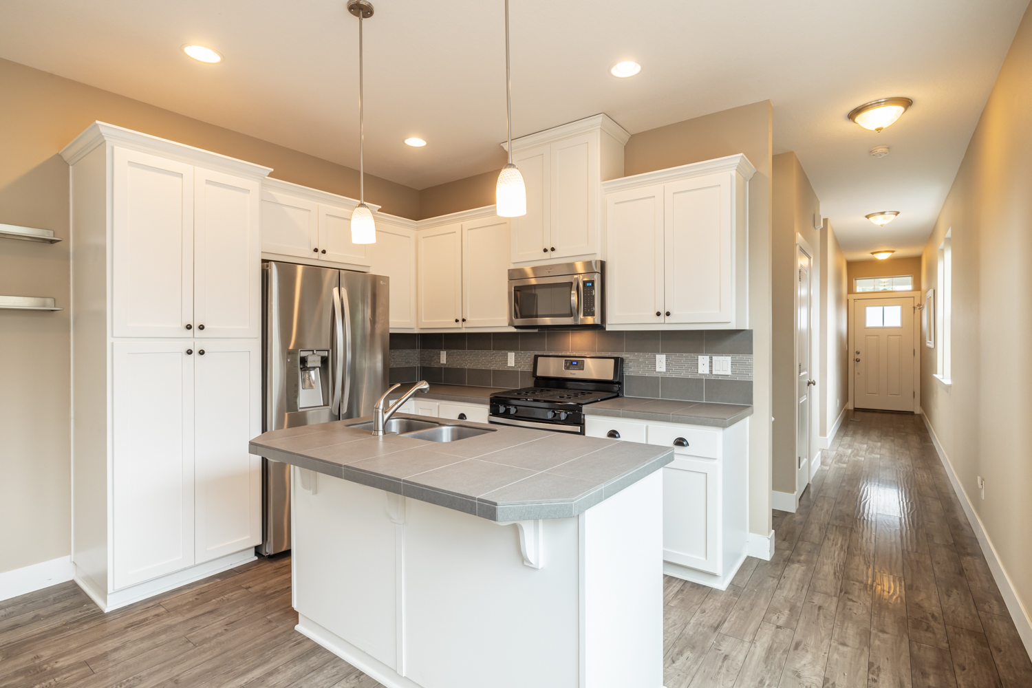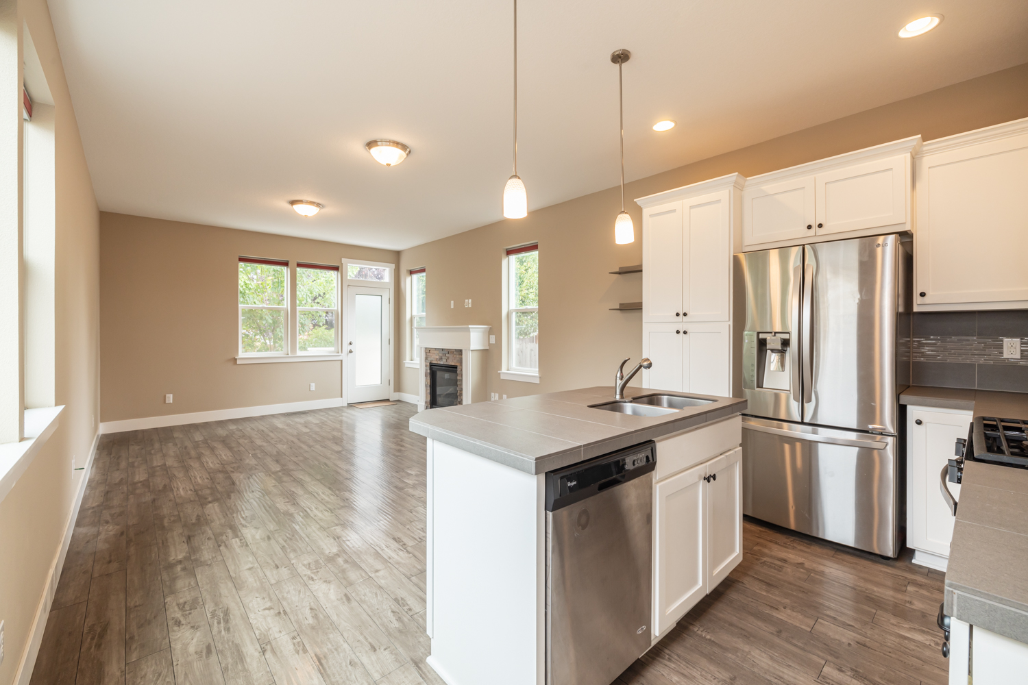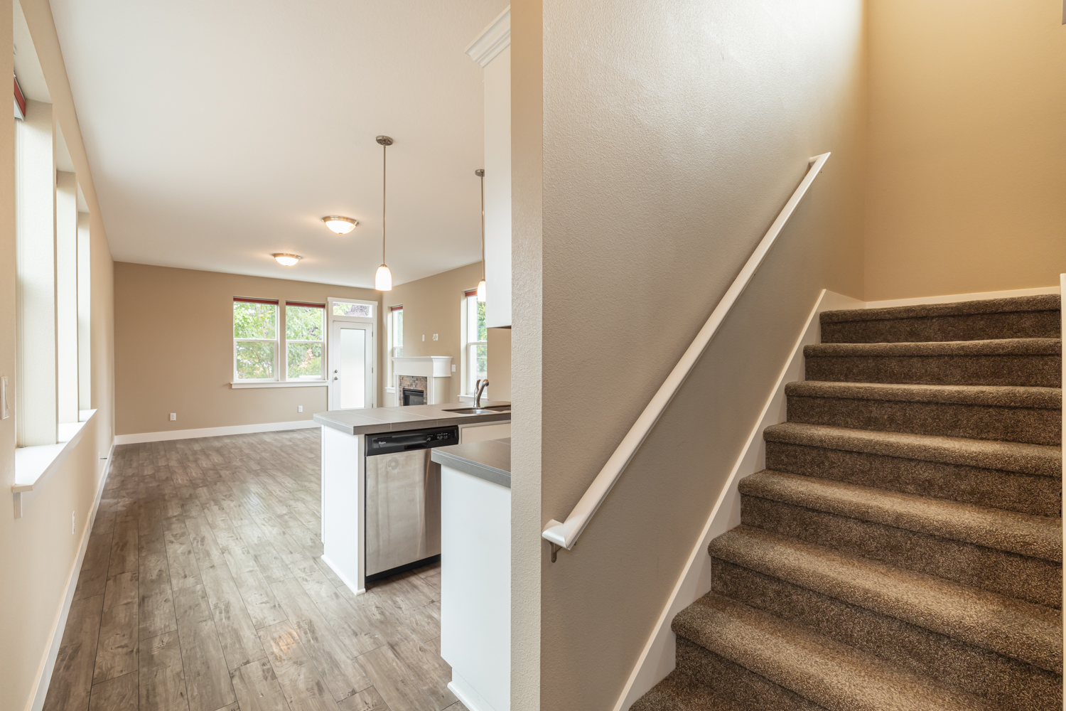 This charming Darlington/Brentwood home showcases solid tile countertops, a spacious peninsula island, and a full backsplash in the kitchen, all accentuated by high-end finishes. Unwind by the cozy gas fireplace, while the low-maintenance yard guarantees effortless upkeep. Stay comfortable throughout the seasons with air conditioning and a dedicated mini-split system in the primary bedroom. Convenience meets style with stackable washer and dryer units. Outside, craftsman vibes and a covered front porch provide a warm welcome, while stainless steel appliances and abundant natural light from large windows define modern living.