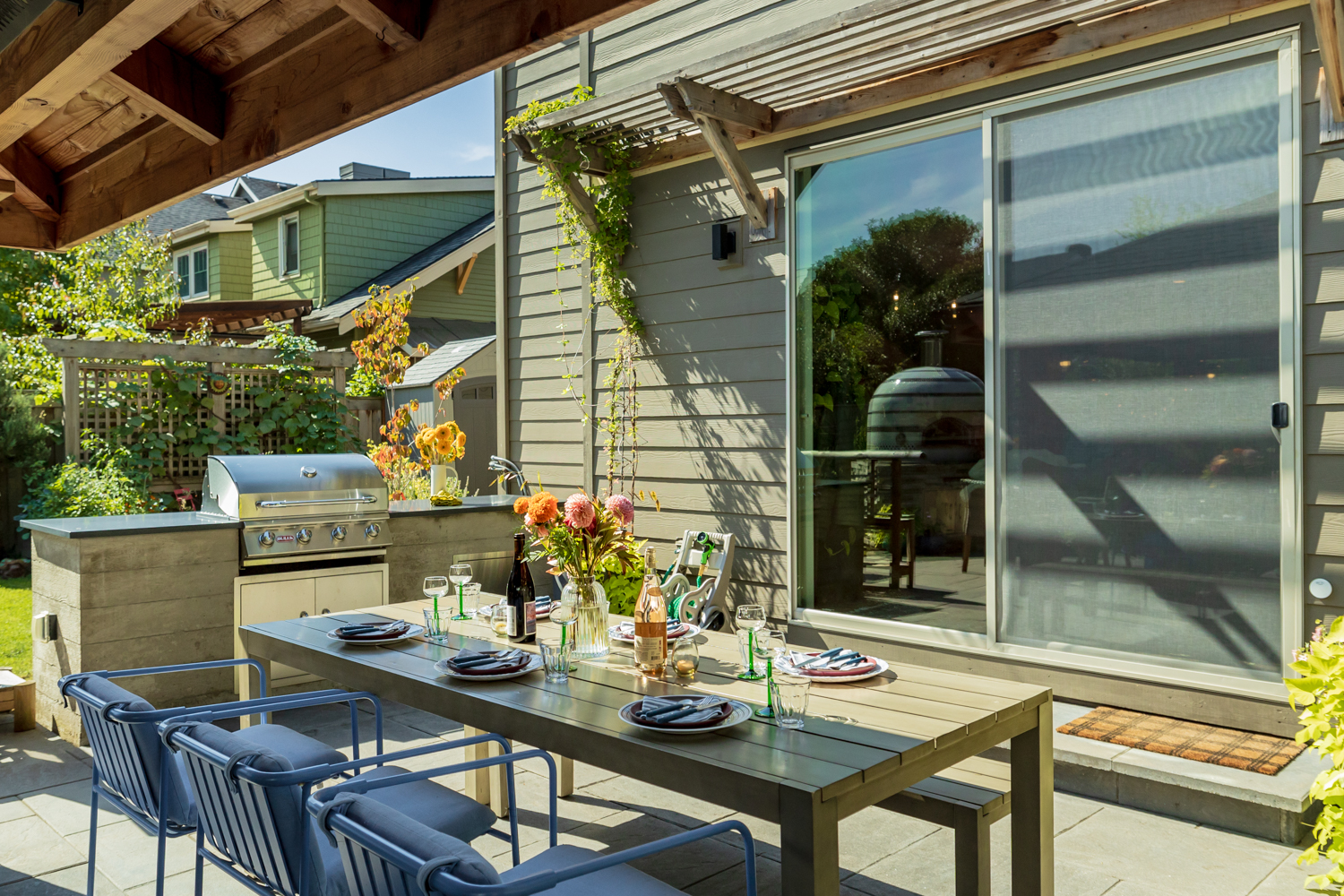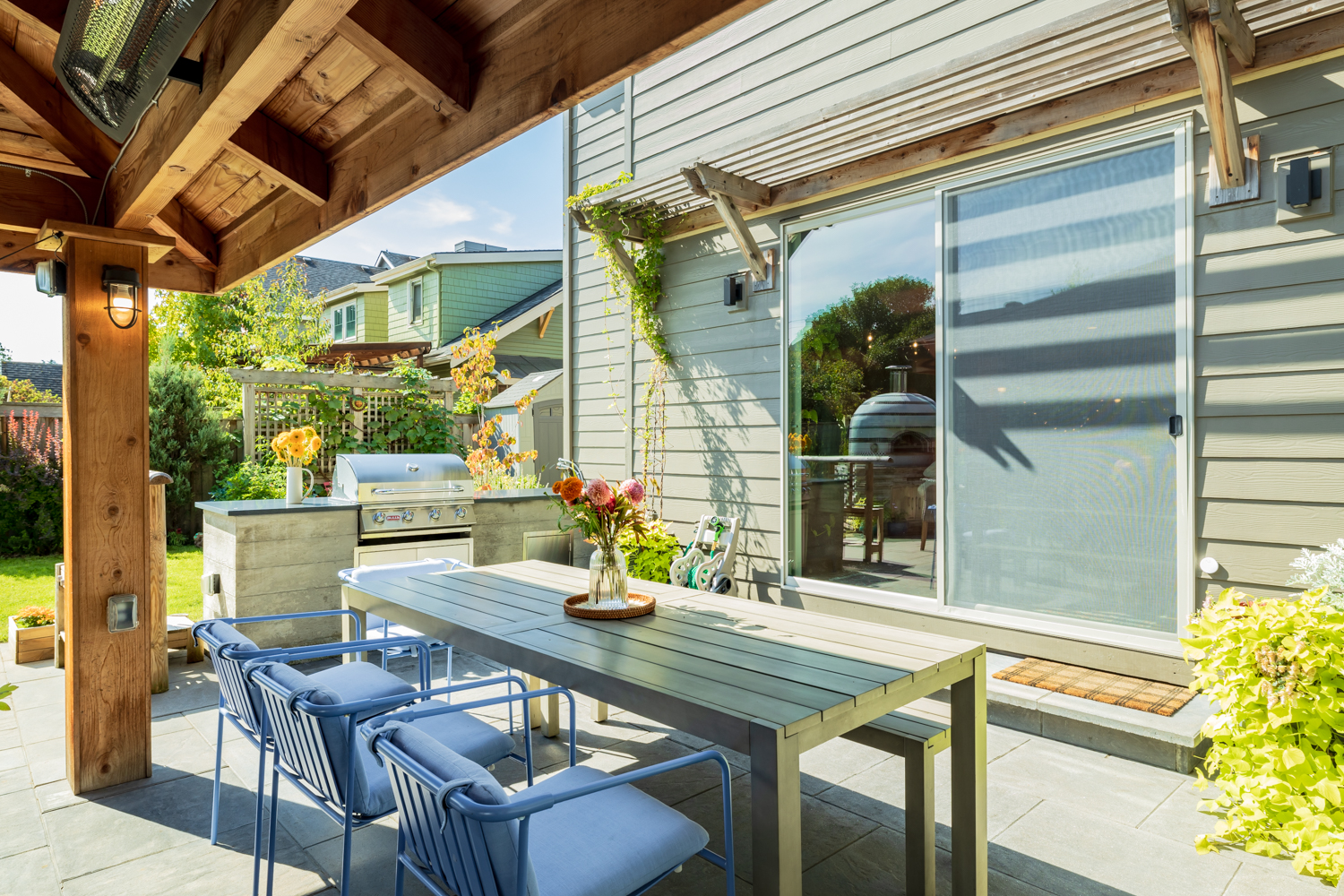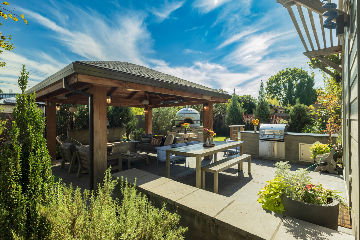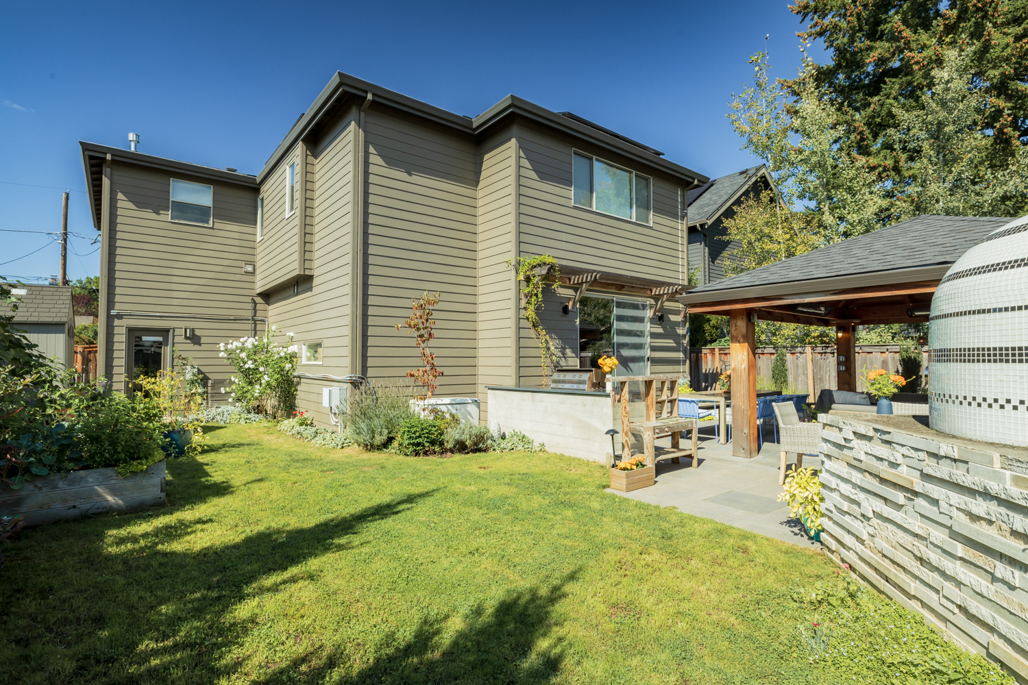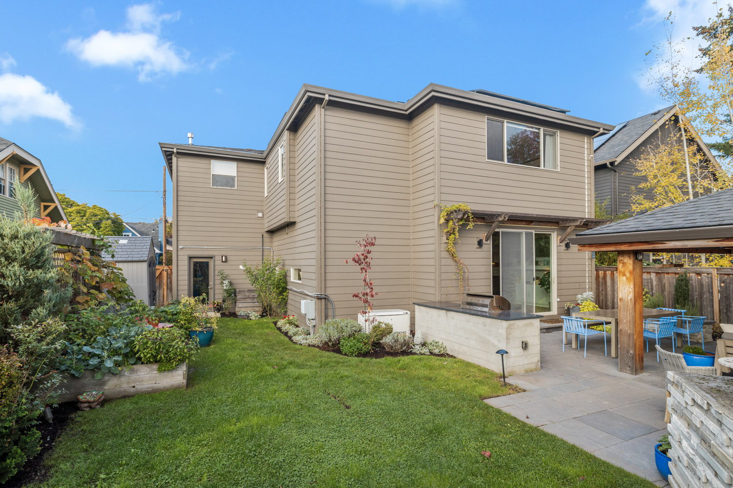 Stunning custom-built home in the heart of Sellwood-Moreland! This 2018-build blends modern convenience w/warmth & thoughtful design. Open-concept living & dining spaces flow seamlessly into the gourmet kitchen w/large island, high end finishes & appliances. 5 spacious bedrooms (or 4 bedrooms + a dedicated office) & 3 full bathrooms. Enjoy entertaining year-round in this beautifully landscaped outdoor living space. Heated pergola & gas fireplace create a cozy vibe, complete w/professionally designed outdoor kitchen & pizza oven. Plenty of gardening space for growing veggies & flowers in raised beds. Solar panels cut electrical bills in half! Stay comfortable during the next snowpocalypse w/whole house generator. Fantastic location, blocks to Sellwood-Moreland cafes, restaurants & shops, popular Westmoreland Park, MAX stop w/quick access to downtown. Perfect timing to get settled in & cozy up for the holidays.