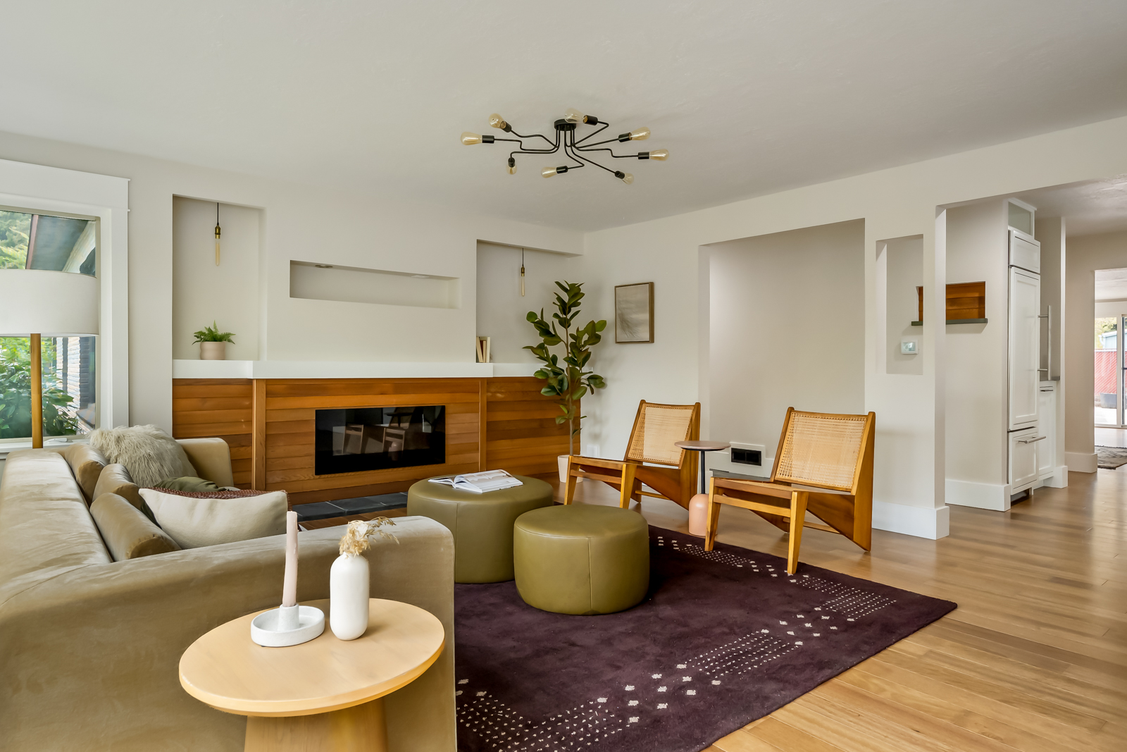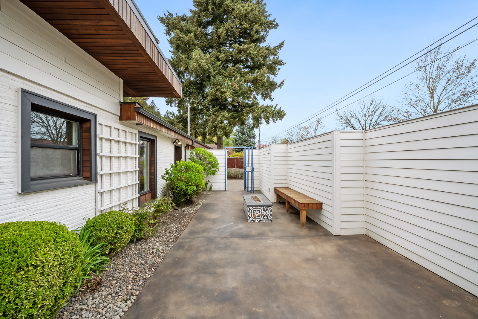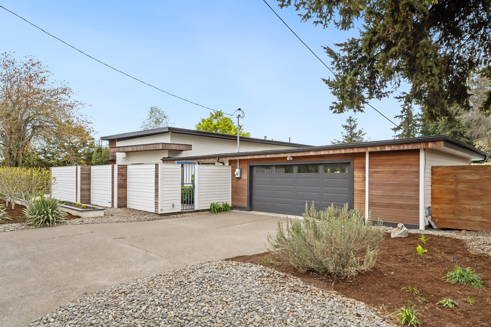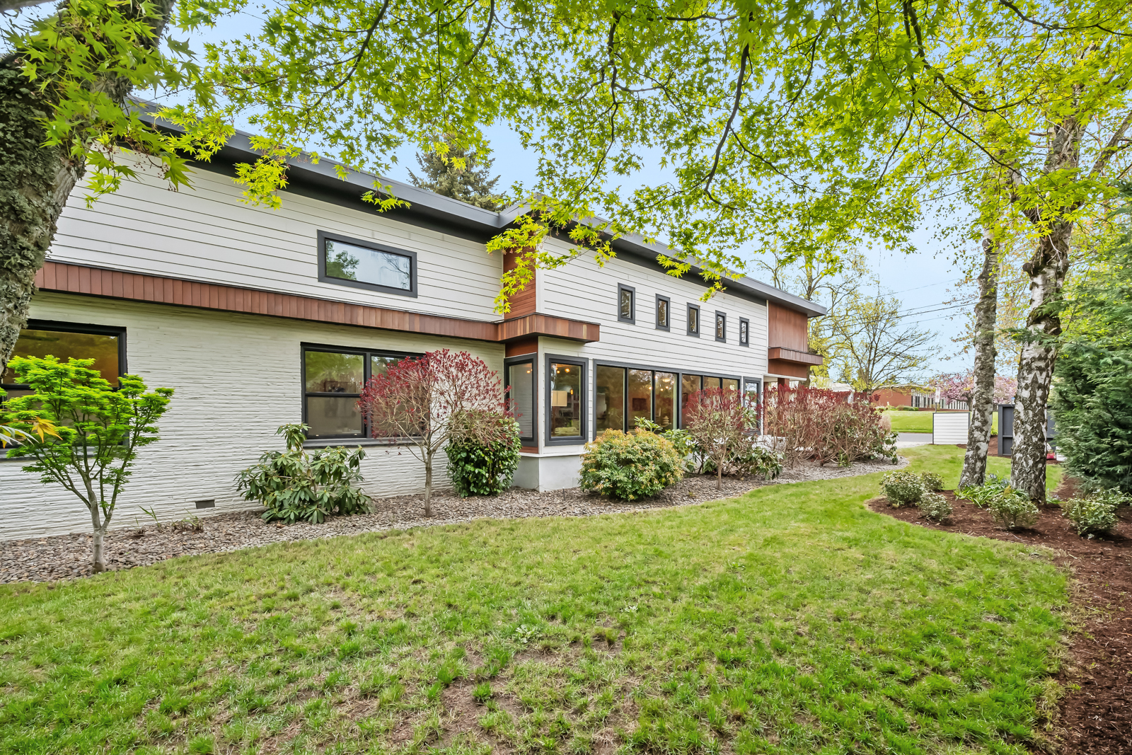 Welcome to a true mid-century oasis. This stunner sits on a corner lot with immaculate, mature landscaping blocking the outside world and creating a luxurious MCM spa-like experience. The primary suite sits pretty with its own private wing, a gorgeous ensuite bathroom with a soaking tub and direct access to a private courtyard. The other three bedrooms reside in the second wing, with a second ensuite. The kitchen is a focal point, featuring sleek cabinetry, a pot filler, an eat bar and high-end appliances. Want to host your perfect mid-century party? There’s a second fridge just for beverages and cocktail creations. The spacious open-concept living area, where the living room, dining room, and kitchen flow seamlessly together is perfect for entertaining or cozying up by the fire on a rainy day. The wall of windows create a relaxing indoor/outdoor vibe. The backyard is a true retreat, featuring a sparkling pool surrounded by a large patio area, perfect for outdoor dining and entertaining. The landscaping is thoughtfully designed to provide both beauty and privacy, with lush greenery and mature trees. This is a truly luxurious single level living with fresh updates that can be difficult to find! Bring your pickiest clients, because this one has it all! The setback, size of the lot and the mature landscaping completely block this home from 92nd Ave. Easy access to Rocky Butte.
