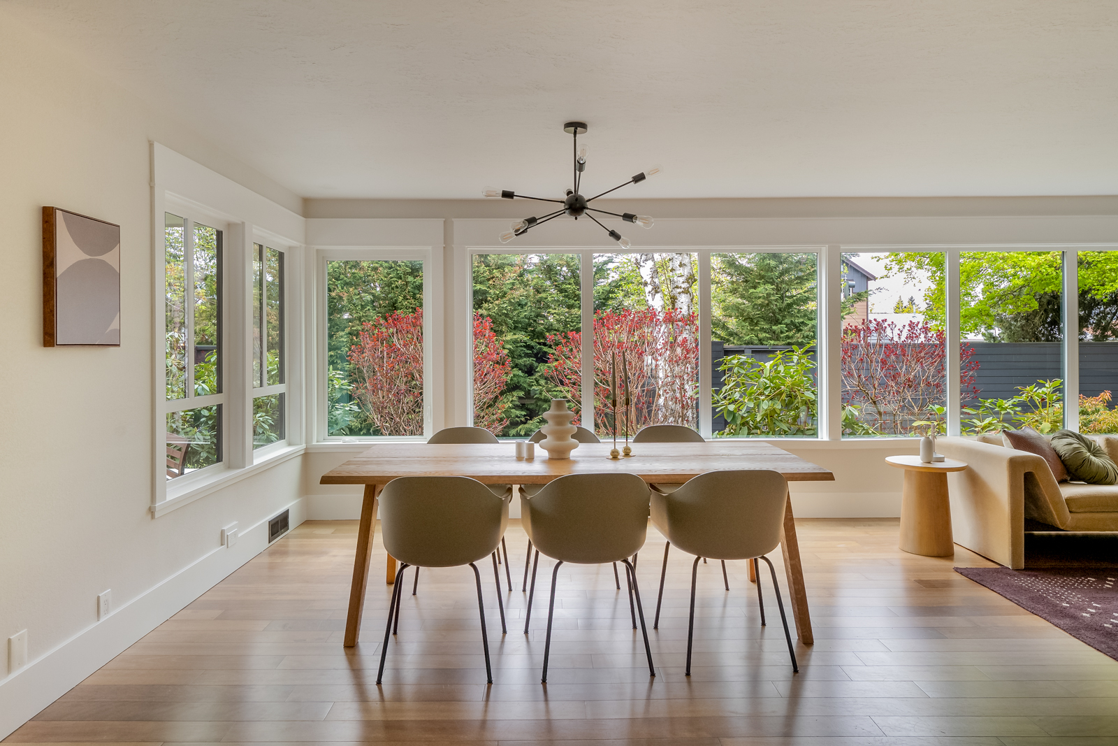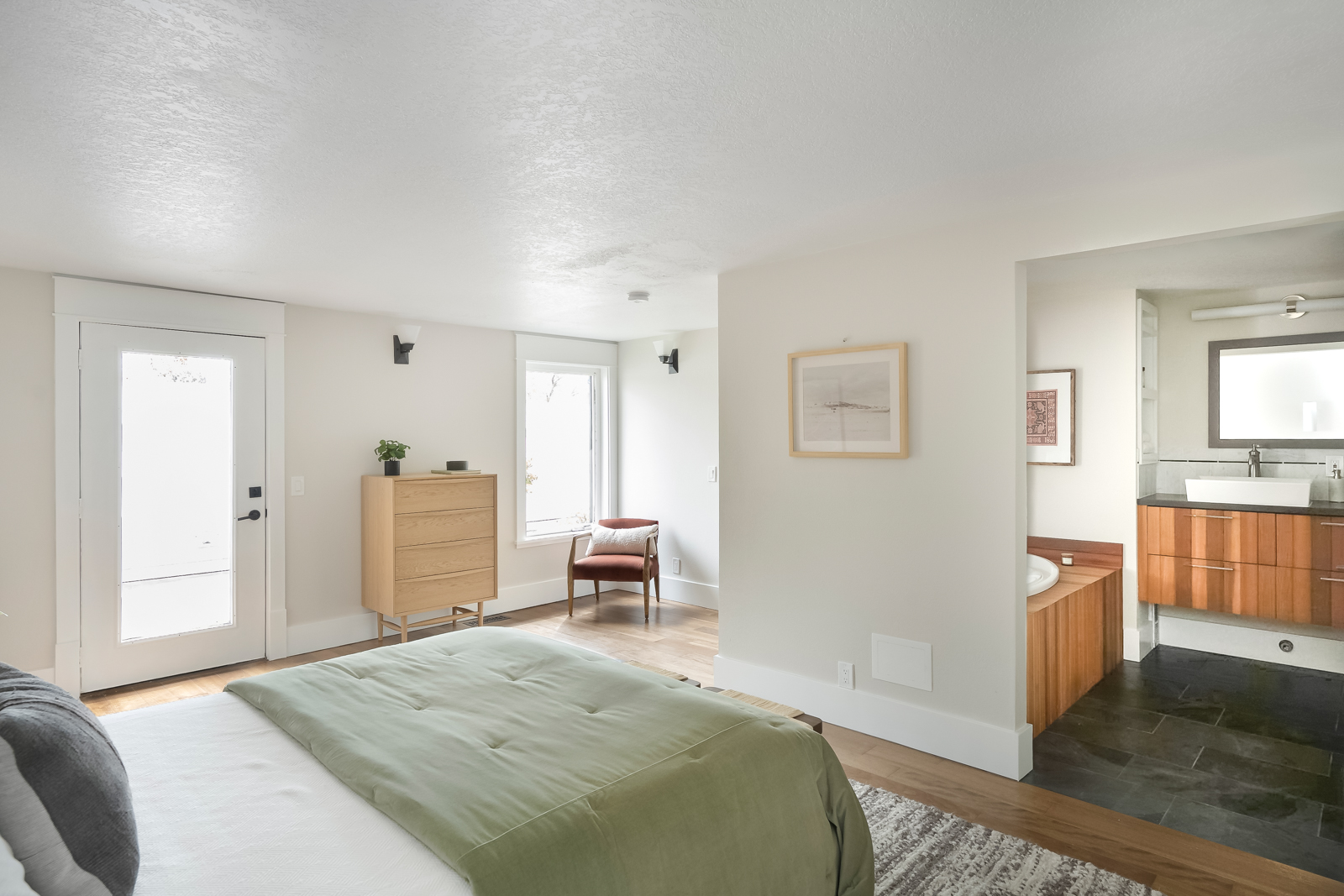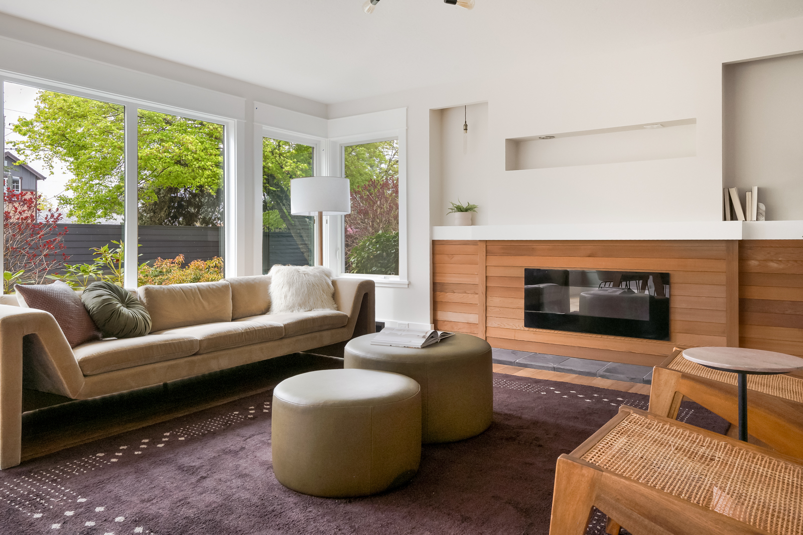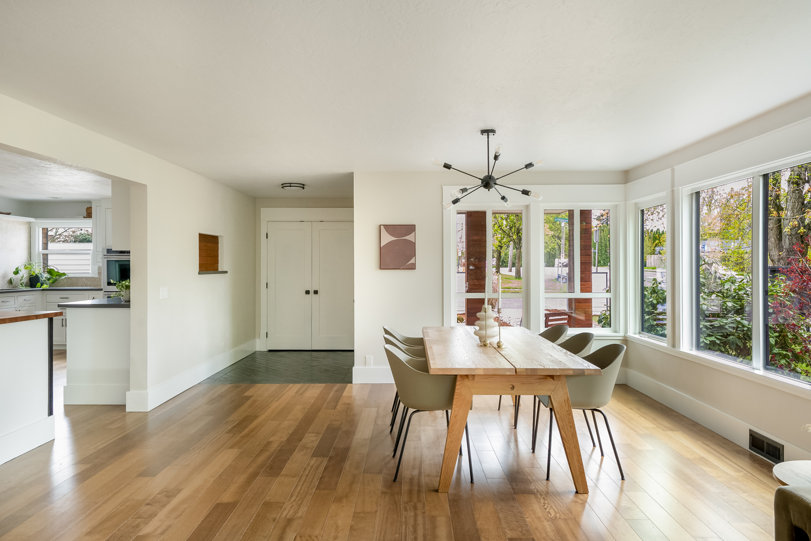 Welcome to a true mid-century oasis. This stunner sits on a corner lot with immaculate, mature landscaping blocking the outside world and creating a luxurious MCM spa-like experience. The primary suite sits pretty with its own private wing, a gorgeous ensuite bathroom with a soaking tub and direct access to a private courtyard. The other three bedrooms reside in the second wing, with a second ensuite. The kitchen is a focal point, featuring sleek cabinetry, a pot filler, an eat bar and high-end appliances. Want to host your perfect mid-century party? There’s a second fridge just for beverages and cocktail creations. The spacious open-concept living area, where the living room, dining room, and kitchen flow seamlessly together is perfect for entertaining or cozying up by the fire on a rainy day. The wall of windows create a relaxing indoor/outdoor vibe. The backyard is a true retreat, featuring a sparkling pool surrounded by a large patio area, perfect for outdoor dining and entertaining. The landscaping is thoughtfully designed to provide both beauty and privacy, with lush greenery and mature trees. This is a truly luxurious single level living with fresh updates that can be difficult to find! Bring your pickiest clients, because this one has it all! The setback, size of the lot and the mature landscaping completely block this home from 92nd Ave. Easy access to Rocky Butte.