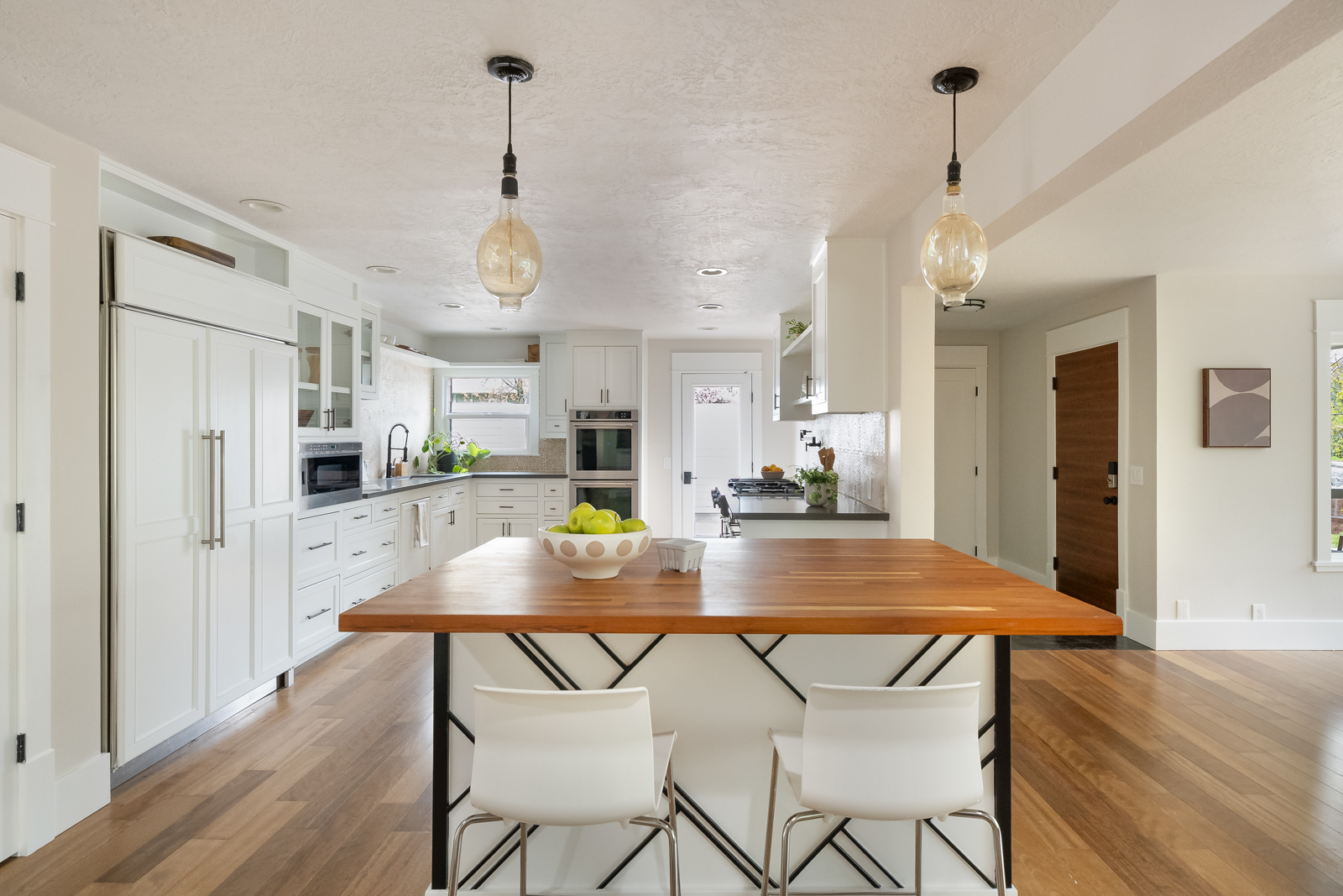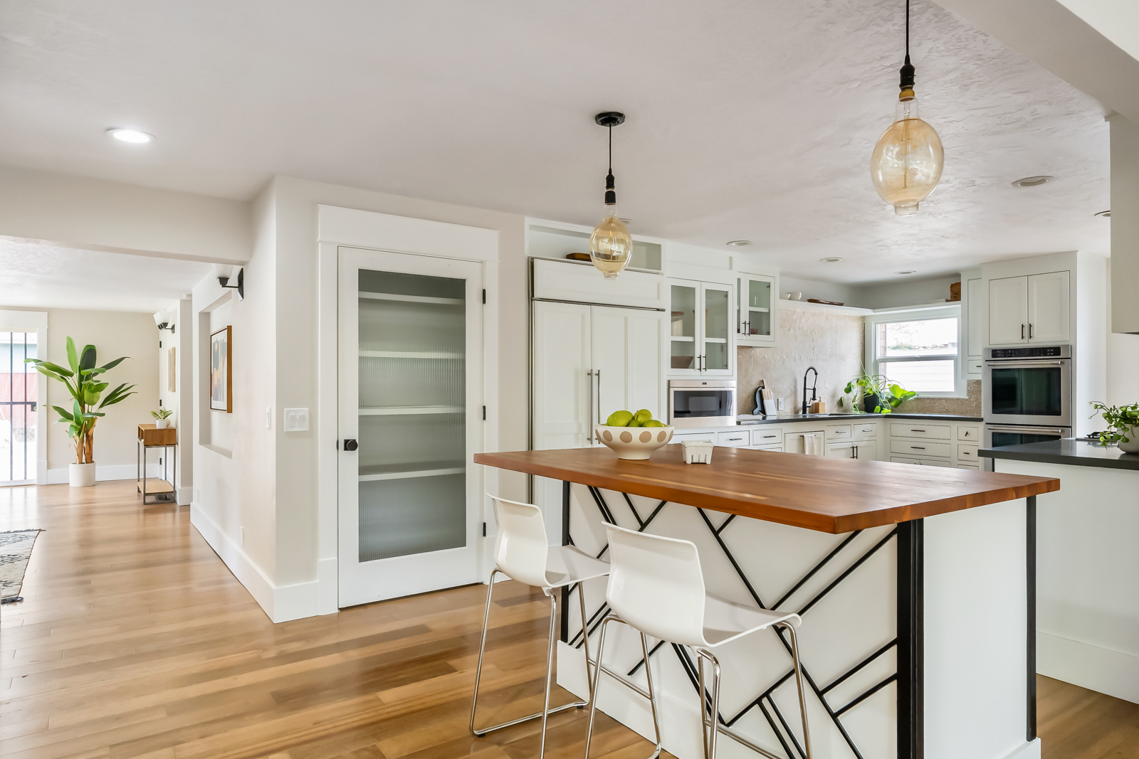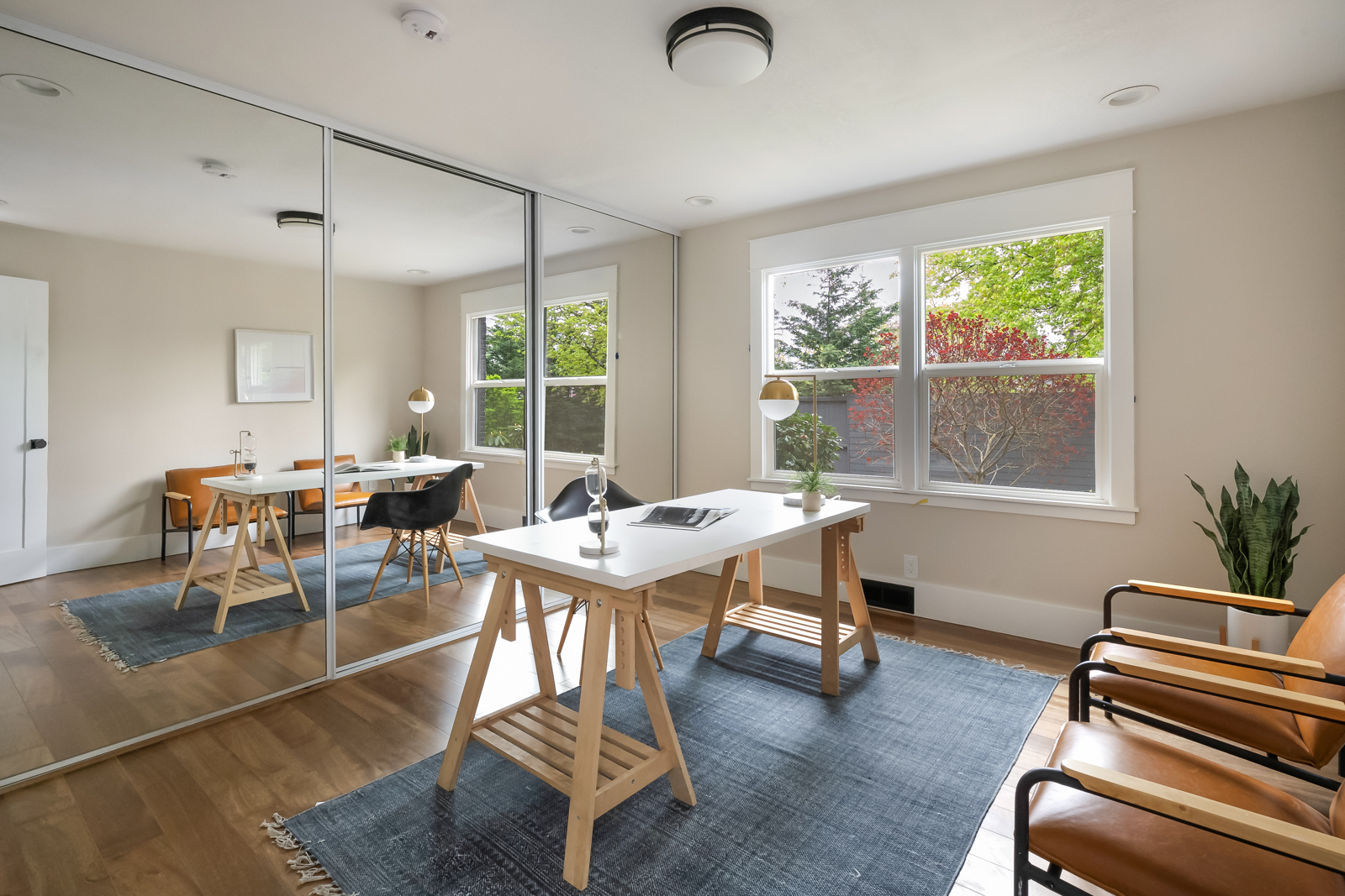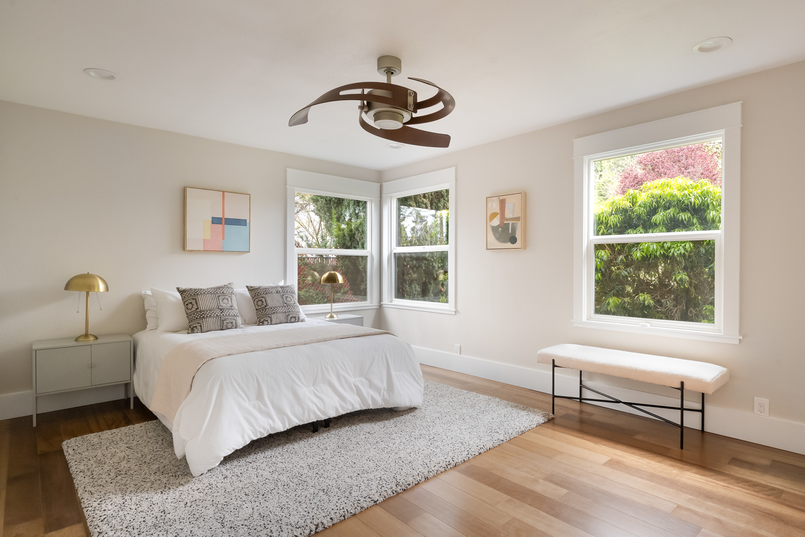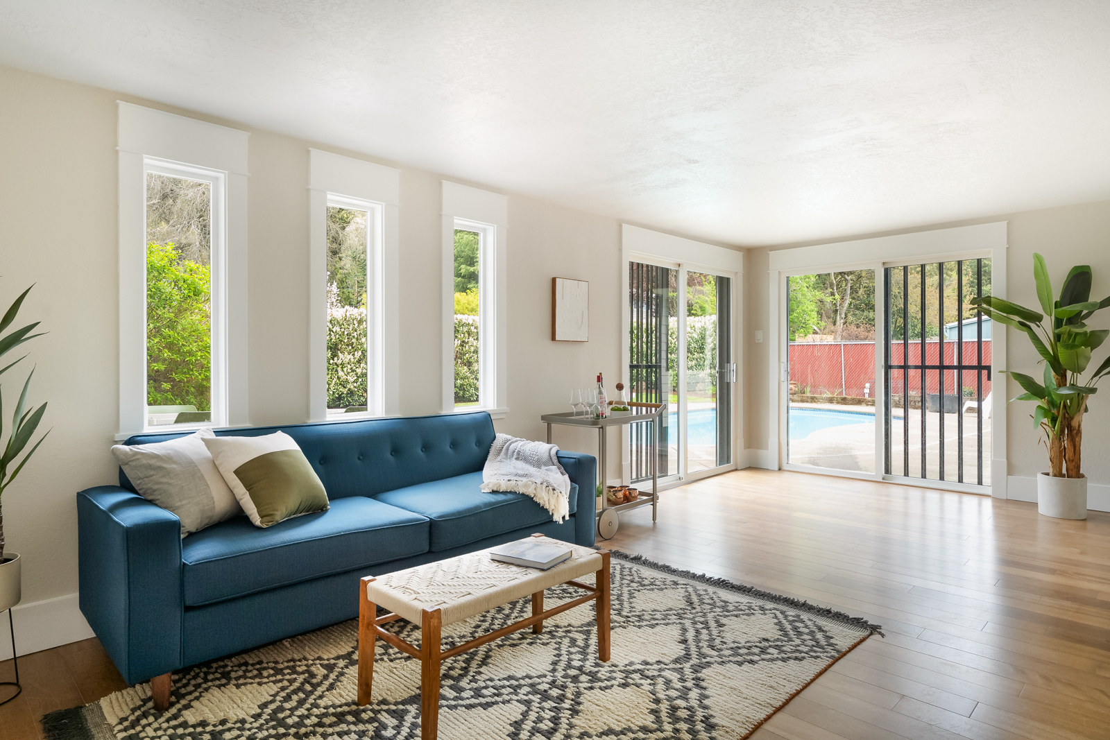 Welcome to a true mid-century oasis. This stunner sits on a corner lot with immaculate, mature landscaping blocking the outside world and creating a luxurious MCM spa-like experience. The primary suite sits pretty with its own private wing, a gorgeous ensuite bathroom with a soaking tub and direct access to a private courtyard. The other three bedrooms reside in the second wing, with a second ensuite. The kitchen is a focal point, featuring sleek cabinetry, a pot filler, an eat bar and high-end appliances. Want to host your perfect mid-century party? There’s a second fridge just for beverages and cocktail creations. The spacious open-concept living area, where the living room, dining room, and kitchen flow seamlessly together is perfect for entertaining or cozying up by the fire on a rainy day. The wall of windows create a relaxing indoor/outdoor vibe. The backyard is a true retreat, featuring a sparkling pool surrounded by a large patio area, perfect for outdoor dining and entertaining. The landscaping is thoughtfully designed to provide both beauty and privacy, with lush greenery and mature trees. This is a truly luxurious single level living with fresh updates that can be difficult to find! Bring your pickiest clients, because this one has it all! The setback, size of the lot and the mature landscaping completely block this home from 92nd Ave. Easy access to Rocky Butte.