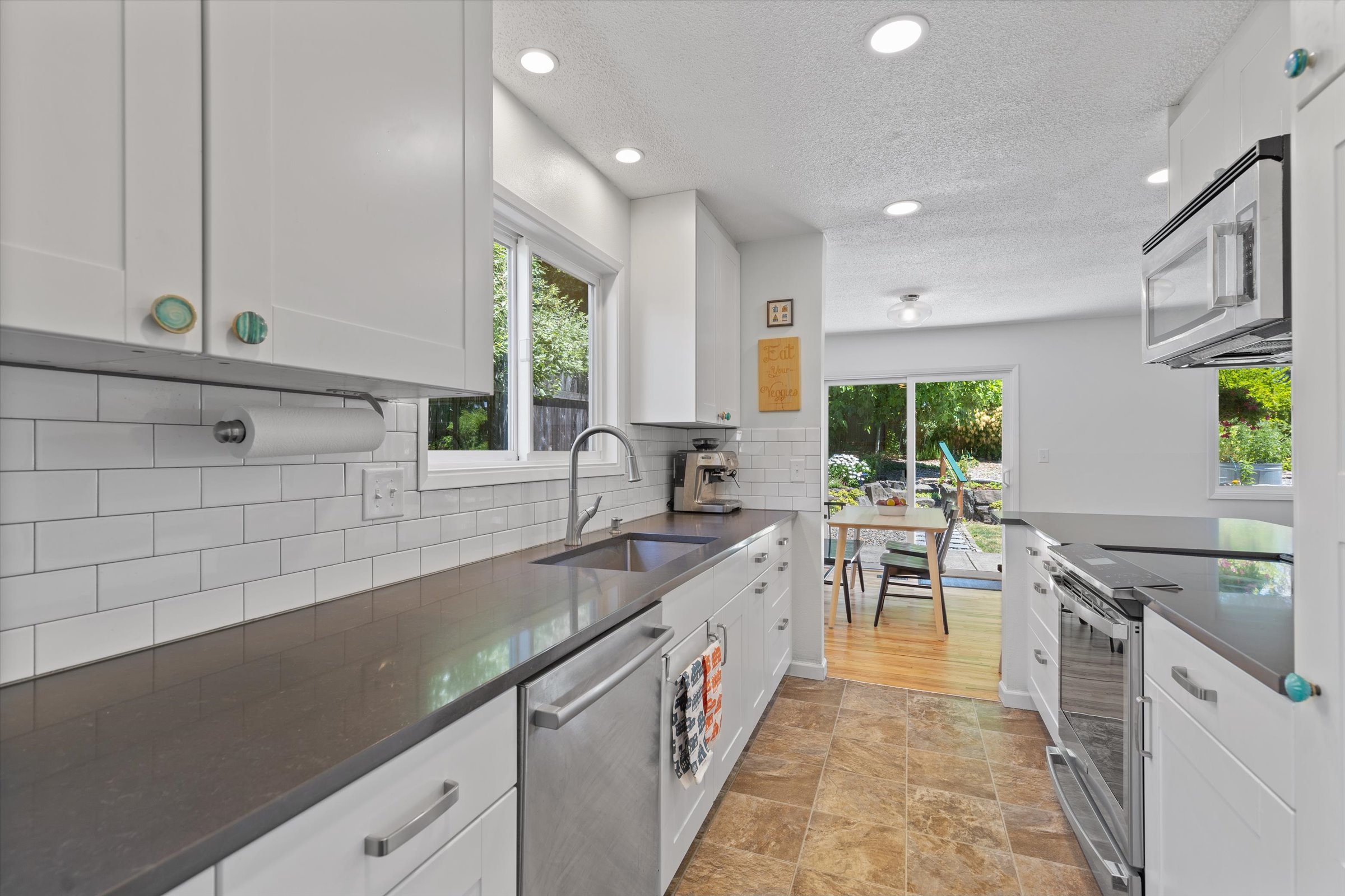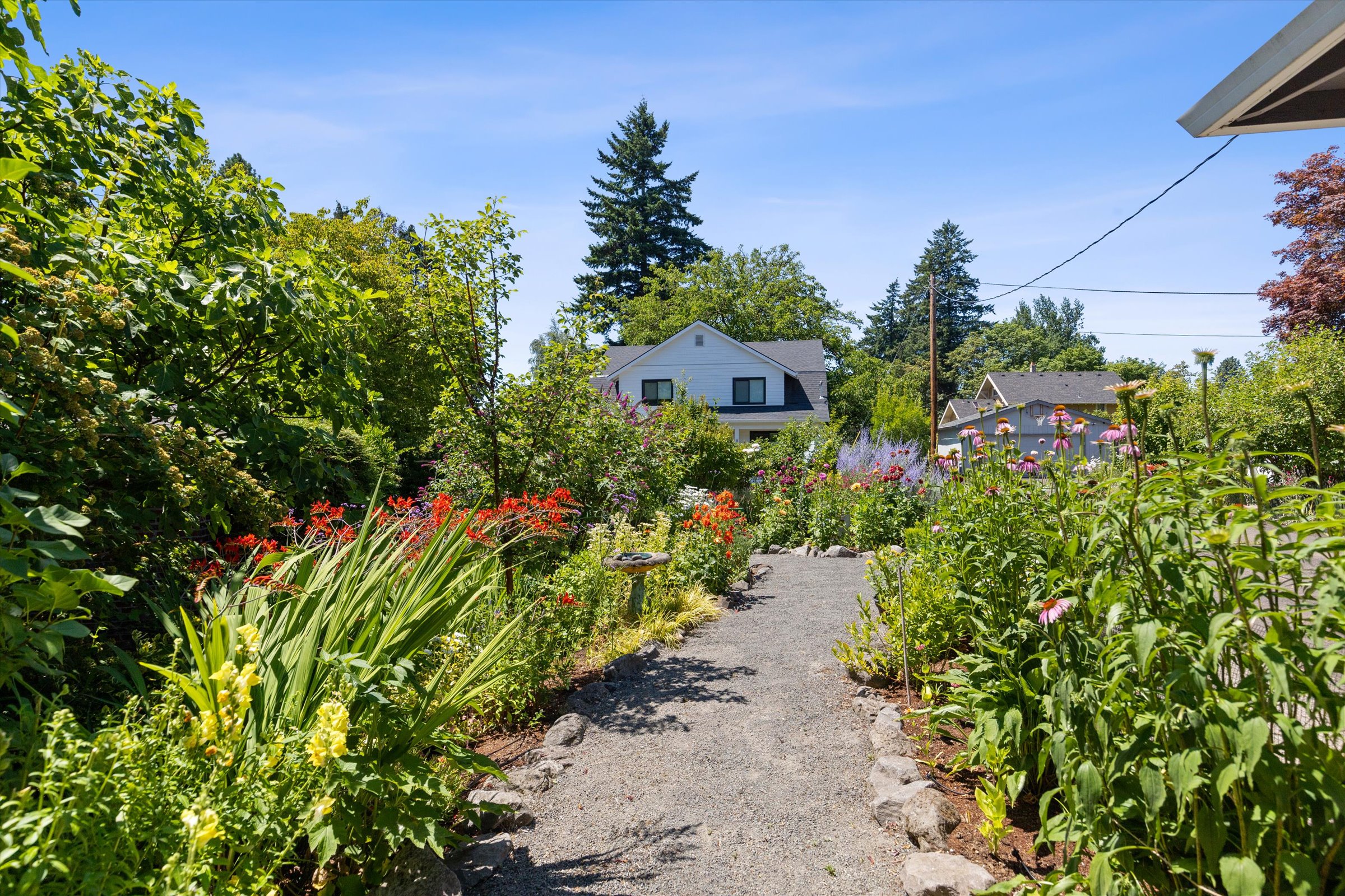 This home is NOT on Tacoma, it’s on the end of hidden dead-end street. The location is breathtaking! The oversized backyard looks out onto green space and is cultivated to perfection. Sitting high above the Springwater Corridor, which is not accessible from property, this is truly a slice of paradise. Straddling the Ardenwald/Sellwood border, enjoy premier schools, just a short roll to all that Sellwood has to offer. And we haven’t even gotten to the house…which is a single level, mid-century dreamsicle. Gleaming hardwoods throughout, a renovated chef’s kitchen, a cute as a button breakfast nook, a dining room that gazes into the gorgeous yard, and 3 large bedrooms plus a primary ensuite…you can truly have it all! Wonder if it’s too good to be true? It’s not. New roof, freshly refinished floors, new paint throughout, newer eco-furnace and a central-air heat pump which is energy efficient and good for the planet. The updates list is massive! Don’t forget all the charm of the 60’s paired with two updated bathrooms; every room has been thoughtfully touched and renovated. This is a truly a special property, you’re going to want to see it in person cause the photos can’t capture the je ne sais quoi this property is bursting with!